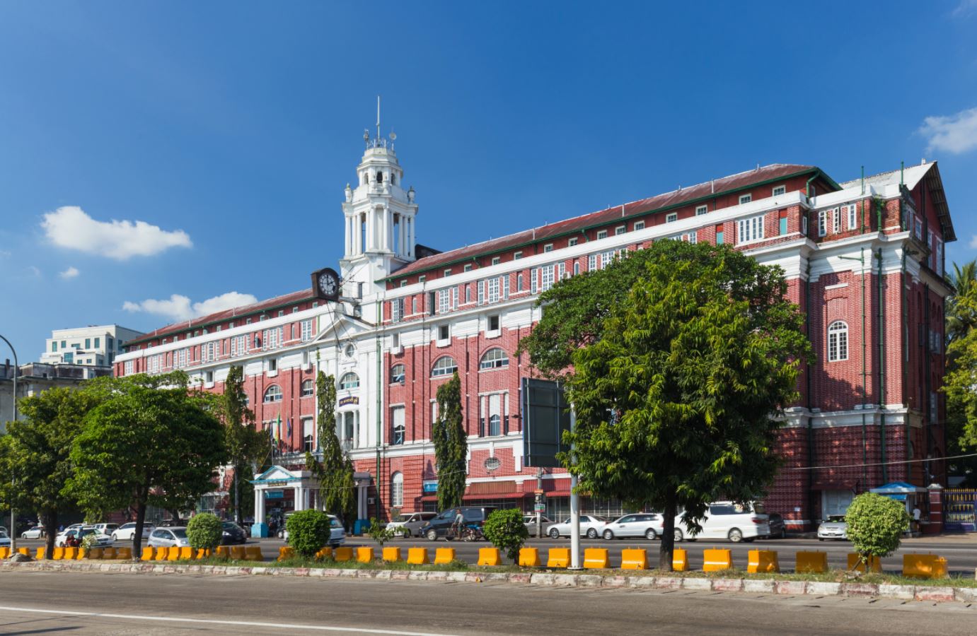 အကောက်ခွန်ဦးစီးဌာနအဆောက်အအုံသည် ရန်ကုန်မြို့၊ ကျောက်တံတားမြို့နယ်၊ ကမ်းနားလမ်း၊ အမှတ် ၁၃၂ တွင် တည်ရှိပြီး ရန်ကုန်မြို့ရှိ သက်တမ်းရင့် ကိုလိုနီခေတ်အဆောက်အအုံများထဲမှ တစ်ခုအပါအဝင်ဖြစ်သည်။ အကောက်ခွန်အဆောက်အအုံကို စကော့တလန်လူမျိုး ဗိသုကာပညာရှင် ဂျွန်ဘက်ဂ် (John Begg) မှ ဒီဇိုင်းရေးဆွဲခဲ့ပြီး ဒုတိယ အင်္ဂလိပ်-မြန်မာစစ်ပွဲအပြီး ၁၈၅၃ ခုနှစ်တွင် ဆောက်လုပ်ခဲ့သော သစ်သားအကောက်ခွန်အဆောက်အအုံနေရာ၌ ၁၉၁၂ ခုနှစ်မှ ၁၉၁၆ ခုနှစ်အတွင်း အစားထိုးတည်ဆောက်ခဲ့ပါသည်။ အနီရောင်အုတ်များဖြင့် တည်ဆောက်ထားသည့် ယင်းအဆောက်အဦးတွင် မြင့်မားသော မျှော်စင်ပါဝင်ပြီး မျှော်စင်အောက်ခြေရှိ ထိုအဆောက်အဦး၏ ဘေးတွင်ချိတ်ဆွဲထားသော နာရီကြီးမှာ တစ်မူထူးခြားသည်။ ဆိပ်ကမ်းနှင့်အနီးတွင် တည်ရှိပြီး အကောက်ခွန်ဦးစီးဌာနမှ ထိုအဆောက်အအုံအား လက်ရှိအချိန်အထိ ဆက်လက်အသုံးပြုလျက်ရှိပြီး ရန်ကုန်မြို့ပြအမွေအနှစ်အဆောက်အအုံတစ်ခုအဖြစ် သတ်မှတ်ထားပါသည်။