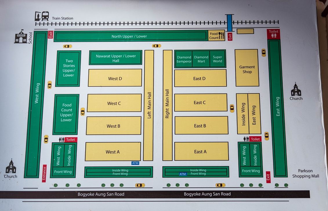 ရန်ကုန်မြို့ ပန်းဘဲတန်းမြို့နယ် ဗိုလ်ချုပ်အောင်ဆန်းလမ်း (ယခင် ကော်မရှင်နာလမ်း)ပေါ်တွင် တည်ရှိသည့် ဗိုလ်ချုပ်အောင်ဆန်းဈေးသည် ကမ္ဘာလည့်ခရီးသွားအများစု စိတ်ဝင်စားကြသော ဈေးဖြစ်သည်။ ရန်ကုန်မြူနီစပယ်အဖွဲ့ (ယခု ရန်ကုန်မြို့တော် စည်ပင်သာယာရေး ကော်မတီ)မှ ၁၉၂၆ ခုနှစ်တွင် တည်ဆောက်ခဲ့ပြီး မြူနီစပယ်မင်းကြီး Gavin Scott ၏ အမည်ကိုအစွဲပြုကာ စကော့ဈေးအမည်ဖြင့် ဖွင့်လှစ်ခဲ့သည်။ ဂျပန်ခေတ်အရောက်တွင် ရဲဘော်သုံးကျိတ်ဝင် ဗိုလ်ရန်နိုင်ကို ဂုဏ်ပြု၍ ရန်နိုင်ဈေးဟု အမည်ပေးခဲ့ပြီး လွတ်လပ်ရေးရအပြီးတွင် ဗိုလ်ချုပ်အောင်ဆန်းဈေးဟု အမည်ပြောင်းလဲခဲ့သည်။ ဆိုင်ခန်းပေါင်း ၂၀၀၀ ကျော်ပါဝင်ပြီး ခေတ်အဆက်ဆက် ရန်ကုန်မြို့နေ လူတန်းစားအသီးသီးအတွက် နောက်ဆုံးပေါ် ဖက်ရှင်အဝတ်အထည်များ၊ လက်ဝတ်ရတနာများ၊ နေ့စဉ်လိုအပ်သည့် ပစ္စည်းများ ဝယ်ယူရာနှင့် အားလပ်ချိန် လည်ပတ်ရာ အဓိက နေရာတစ်ခုဖြစ်သည်။ ယခုအခါ ယင်းဈေးကြီးသည် မြို့နေသူများအတွက်သာမက ကမ္ဘာလှည့်ခရီးသွားများအား အနုပညာပစ္စည်းများ၊ အမှတ်တရ လက်ဆောင်ပစ္စည်းများဖြင့် ဆွဲဆောင်နိုင်သော နေရာလည်း ဖြစ်လာခဲ့သည်။ ရန်ကုန်မြို့ပြအမွေအနှစ်ထိန်းသိမ်းစောင့်ရှောက်ရေးအဖွဲ့ (YHT)မှ ၂၀၁၇ ခုနှစ် ဇန်နဝါရီလ ၂၀ ရက်နေ့တွင် ၁၆ ခုမြောက် ရန်ကုန်မြို့ပြအမွေအနှစ်အထိမ်းအမှတ် အပြာရောင်ကမ္ဗည်းပြား တပ်ဆင်ခဲ့ပါသည်။ (ဗိုလ်ချုပ်အောင်ဆန်းဈေးသည် အပတ်စဉ် တနင်္လာနေ့တိုင်း ပိတ်သည်။)