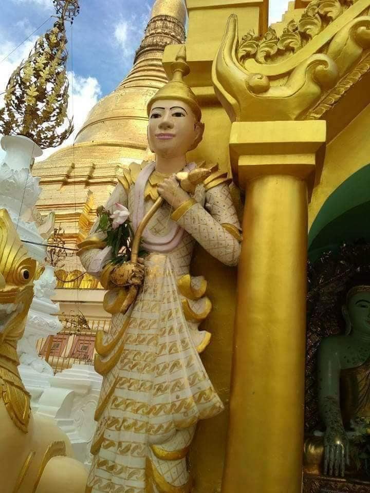 ရန်ကုန်မြို့ ရွှေတိဂုံစေတီတော် အင်္ဂါထောင့်နှင့် ဗုဒ္ဓဟူးထောင့်ကြားတွင် ဗြမ္မာကြာဖူးကိုင်ထားပုံနှင့် စေတီတစ်ဆူရှိပါသည်။ ကလေးလိုချင်လျှင် ဆုတောင်းပြည့်သည်ဟုယုံကြည်ကြသည်။ သမီးလေးလိုချင်ရင် ကြာဖူးကိုင်ထားသည့် ရုပ်ထုရှေ့၌ လက်ဖက် ၇ ပွဲ၊ ရေ ၇ ခွက်၊ သပြေ ၇ ညွန့်နှင့် ရွှေပန်းငွေပန်းများလှူပြီး ဆုတောင်းပါက ကလေးရချင်များ ကလေးရဖို့ခက်သောသူများ ကလေးရစေသည်ဟု မှတ်သားဖူးပါသည်။