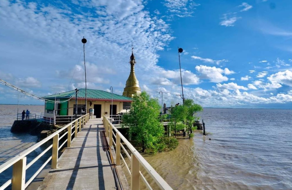 ရန်ကုန်တိုင်းဒေသကြီး ကျောက်တန်းမြို့ မီးပြကျေးရွာတွင် တည်ရှိသည်။ စေတီတော်သည် ပင်လယ်နှင့်မေးတင်လျက်တည်ရှိပြီး ကုန်းမြေနှင့်စေတီအကြား ခင်းထားသော အုတ်တံတားမှ မိနစ်အနည်းငယ်ဖြတ်လျှောက်ကာ သွားရောက်ဖူးမြော်နိုင်သည်။ မူလ ၁၂၈၀ ပြည့်နှစ်က မီးပြရွာတွင် ဉာဏ်တော် ၉ တောင်ခန့်ရှိသော “ရွှေဘုံသာ၊ အောင်တော်မူ၊ မြသာ၊ တဝဂူ၊ ဟင်္သာမင်း၊ ပတ္တမြား၊ သုဝဏ္ဏ၊ မင်္ဂလာ၊ သတ္တဌာန” ဟုဆိုသော စေတီတော် ၉ ဆူရှိခဲ့သည်။ ထိုစေတီများထဲမှ စေတီ ၈ ဆူ ပျက်စီးလုနည်းပါးဖြစ်သွားချိန်၌ ယိုယွင်းမှု အနည်းဆုံးအဖြစ် ကျန်ရှိသော ရွှေဘုံသာစေတီတော်ကိုသာ ကျောင်းထိုင်ဆရာတော် ဦးဆောင်မှုဖြင့် ကျန်ရှိသော စေတီ ၈ ဆူထဲရှိ ဓာတ်တော်ဌာပနာများကို စုပေါင်း၍ ၁၃၈၂ ခုနှစ်တွင် ဉာဏ်တော် ၃၆ တောင်ရှိ ရွှေဘုံသာစေတီကို ပြန်လည်ပြုပြင် တည်ထားခဲ့သည်ဟု သိရသည်။ စေတီတော်၏ ဗုဒ္ဓပူဇနိယပွဲတော်ကို နှစ်စဉ် တပေါင်းလပြည့်ကျော် ၂ ရက်နေ့မှ ၃ ရက်နေ့အထိ စည်ကားစွာ ကျင်းပလေ့ရှိသည်။