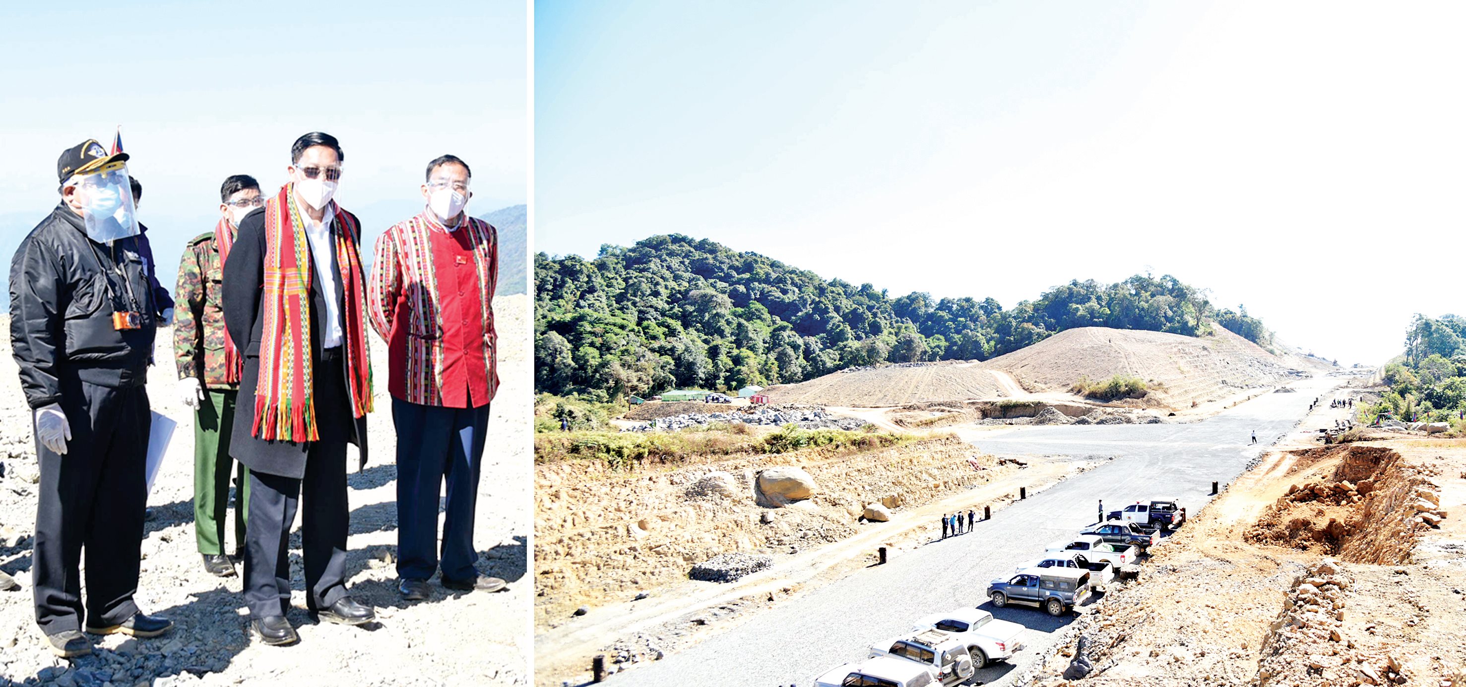 ထို့နောက် ဒုတိယသမ္မတသည် လိုင်လင်းပီ လေယာဉ်ကွင်းငယ်တည်ဆောက် ပြီးစီးမှုအခြေအနေများအား ရှုရပ်မှ ကြည့်ရှုစစ်ဆေးသည်။