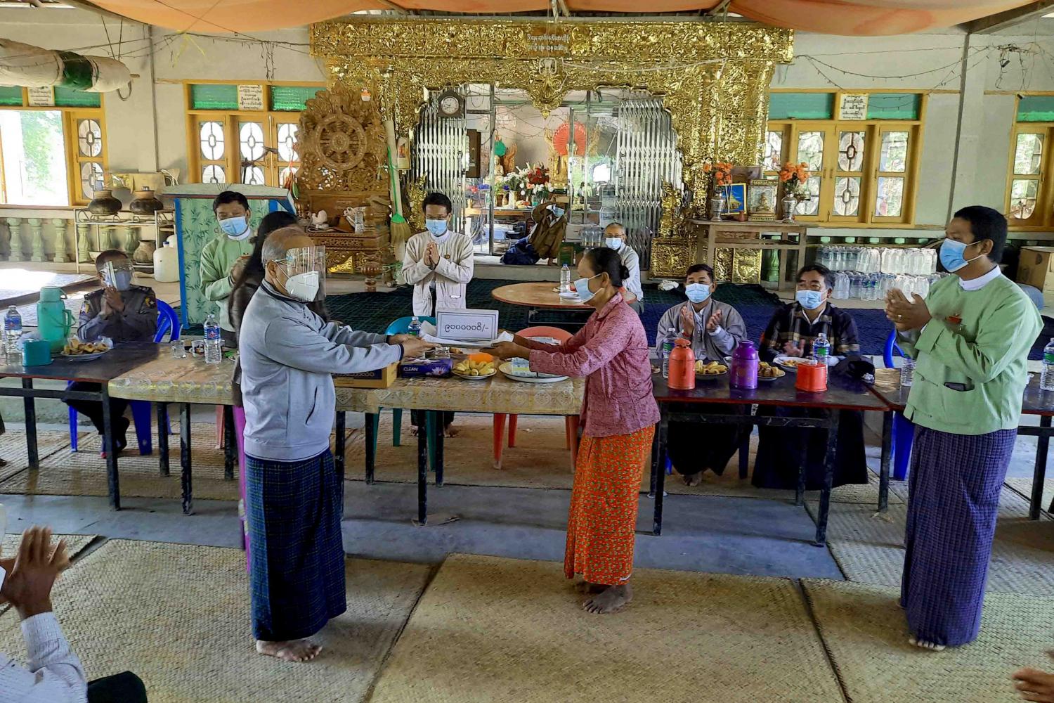ရှေးဦးစွာ မကွေးတိုင်းဒေသကြီးအစိုးရအဖွဲ့ ဝန်ကြီးချုပ် ဒေါက်တာအောင်မိုးညိုနှင့် တာဝန်ရှိသူများ အဖွဲ့သည် ဧရာဝတီမြစ်ကမ်းပါး ပြိုကျမှုကြောင့် ဘေးလွတ်ရာသို့ ပြောင်းရွှေ့ရသော အိမ်ထောင်စုများအတွက် မြေနေရာရရှိရေး စီစဉ်ဆောင်ရွက်ထားရှိမှုများကို ကြည့်ရှုစစ်ဆေးသည်။ ဆက်လက်၍ အခမ်းအနားကို ကျင်းပရာ မကွေးတိုင်းဒေသကြီးဝန်ကြီးချုပ် ဒေါက်တာအောင်မိုးညို က ဧရာဝတီမြစ်ကမ်းပါးပြိုကျမှုကြောင့် ပြောင်းရွှေ့ရသော အိမ်ထောင်စုများ အဆင်ပြေစွာ နေထိုင်နိုင်ရေး အိမ်ဝိုင်းမြေနေရာ ဝယ်ယူရန်အတွက် ထောက်ပံ့ငွေများ လာရောက်ပေးခြင်း ဖြစ်ပါကြောင်း၊ နိုင်ငံတော်အစိုးရအနေဖြင့် ကျေးလက်နေပြည်သူများ လူမှုစီးပွားဘဝ ဘက်စုံဖွံ့ဖြိုးတိုးတက်ရေးအတွက် ကြိုးပမ်းအကောင်အထည်ဖော် ဆောင်ရွက်လျက် ရှိပါကြောင်း၊ ယခုအချိန်အခါသည် ကိုဗစ် - ၁၉ ရောဂါဖြစ်ပွားနေသည့်ကာလဖြစ်၍ ပြည်သူများအနေဖြင့် ရောဂါကူးစက်ပြန့်ပွားမှု မဖြစ်စေရေး နိုင်ငံတော်မှ ထုတ်ပြန်ထားရှိသော ကိုဗစ် - ၁၉ ရောဂါကြိုတင်ကာကွယ်ရေးလုပ်ငန်းများကို အလေးထားလိုက်နာ နေထိုင်သွားကြစေလိုကြောင်း ဆွေးနွေးပြောကြားသည်။