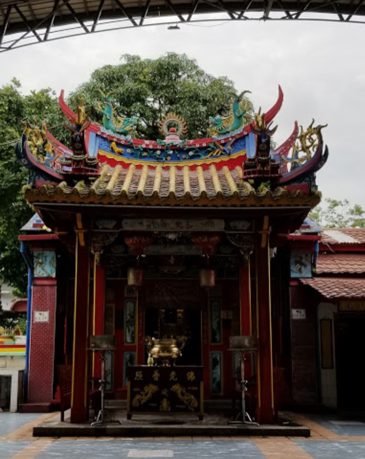 ရန်ကုန်မြို့၊ ဗဟန်းမြို့နယ်၊ ကမ္ဘာအေးဘုရားလမ်း၊ အမှတ် (၁၆၀) တွင် တည်ရှိသည်။ မဟာယာနဗုဒ္ဓဘာသာကျောင်းတစ်ခုဖြစ်ပြီး ဖူးကျန့်ပြည်နယ်၊ အန်ရှီးစီရင်စုမှ မြန်မာပြည်သို့ ရောက်လာကြသော တရုတ်လူမျိုးများဖြစ်သည့် ဟုတ်ကင်းလူမျိုးများမှ ဆင်းသက်လာသူများက ၁၈၇၅ ခုနှစ် ဇန်နဝါရီလတွင် တည်ထောင်ခဲ့ခြင်းဖြစ်သည်။ ဘုရားကျောင်းကို ရန်ကုန်မြို့လယ်ရှိ ခိန့်ဟုတ်ဗုဒ္ဓဘာသာဘုရားကျောင်းမှ ကွပ်ကဲသည်။ တရုတ်ဗုဒ္ဓရဟန်းတော် ချင်ရှီဇူရှိ (祖師公) အား ရည်မှန်းကိုးကွယ်ခြင်းဖြစ်သည်။ ၁၉၆၀ ပြည်နှစ်တွင်လည်းကောင်း၊ ၂၀၀၈ ခုနှစ်တွင် လည်းကောင်း ဘုရားကျောင်းအား ပြန်လည်ပြုပြင်ခဲ့သည်။ တရုတ်နှစ်သစ်ကူးနေ့နှင့် ချင်ရှီးဇူရှိ မွေးနေ့တွင် ဘုရားရှိခိုးသူများစွာနှင့် စည်ကားလျက်ရှိသည်။ ဘုရားကျောင်းဝန်းအတွင်းထဲတွင် စားသောက်ဆိုင်တစ်ဆိုင်နှင့် ဘတ်စကစ်ဘောကစားကွင်းတစ်ခု ပါဝင်သည်။ ဘုရားကျောင်းဝင်းထဲတွင် တရုတ်ဗိသုကာဟန် ကျောက်ဆစ်ရုပ်များ၊ တရုတ်ဟန် ကျောက်စားပွဲများ၊ ထိုင်ခုံအပုများဖြင့် တန်ဆာဆင်ထားသည်။ လသာဆောင်၏ နံဘေး၌ တရုတ် ဆယ့်နှစ်ရာသီခွင်ရုပ်များရှိပြီး တရုတ်တံတားနှင့် မျှော်စင်ပုံ ပန်းချီကားအသေးစားကို တွေ့မြင်နိုင်သည်။ ယခုအခါ ယင်းဘုရားကျောင်းအဆောက်အအုံသည် ရန်ကုန်မြို့ပြရှေးဟောင်းအမွေအနှစ်အဆောက်အအုံများ စာရင်းတွင် တစ်ခုအပါအဝင် ဖြစ်သည်။