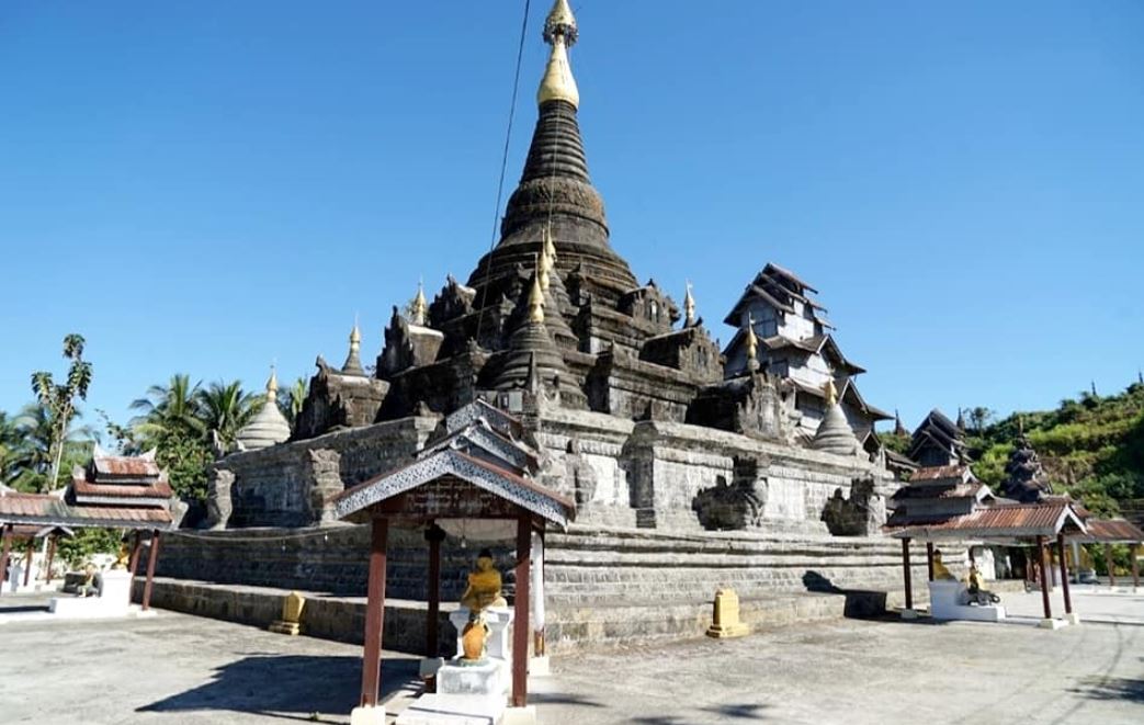 မြောက်ဦးမြို့ နန်းတော်ကုန်း၏ အနောက်ဘက် တစ်မိုင်ခန့်အကွာ၊ ကျောက်ရစ်ချောင်းအနီးတွင် တည်ရှိပါသည်။ သက္ကရာဇ် ၁၀၂၀ ခုနှစ် (ခရစ်နှစ် ၁၆၅၈)တွင် စန္ဒသုဓမ္မရာဇာမင်းက တည်ထားခဲ့ပြီး လောကသုံးပါးဖြစ်သော သတ္တလောက၊ သင်္ခါရ လောက၊ ဩကာသလောကတို့မှ မြတ်စွာဘုရားသည် လွတ်မြောက် အောင်မြင်ခြင်းကို အထိမ်းအမှတ်အဖြစ် လောကမာရ်အောင်စေတီဟု ဘွဲ့အမည်ပေးခဲ့သည်။ စေတီတော်သည် အောက်ခြေလေးမြှောင့် စတုရန်းလေးထောင့်ပုံဖြစ်ပြီး တစ်ဖက်လျှင် ၇ ပေရှိကာ ဉာဏ်တော်အမြင့် ပေ ၁၀၀ မြင့်သည်။ ပစ္စယံလေးဆင့်သည်လည်း လေးထောင့် စတုရန်းပုံဖြစ်သည်။ အောက်ဆုံးအဆင့် ပစ္စယံတွင် ထောင့်လေးထောင့်၌ ဦးခေါင်းတစ်ခု ခန္ဓာနှစ်ခုရှိသော ပူးမင်းရုပ်များ ရှိသည်။ အရပ်လေးမျက်နှာသို့ မျက်နှာမူထားသော တစ်ဖက် နှစ်ရုပ်စီ ရှစ်ရုပ်ရှိသည်။ ဒုတိယပစ္စယံမှ စတုတ္ထပစ္စယံထိ ထောင့်များတွင် အဝိုင်းစေတီတစ်ဆူကျစီ ရှိသည်။ တစ်ဆင့်လျှင်လေးဆူ စုစုပေါင်း ၁၂ ဆူရှိသည်။ ထိုပစ္စယံများ၏ အလယ် တည့်တည့်တွင် အရပ်လေးမျက်နှာ အသီးသီးသို့ လှည့်နေသော မုခ်ဂိတ်ဂူငယ် ၁၂ ခုရှိသည်။ ထိုဂူများထဲတွင် ထိုင်တော်မူဗုဒ္ဓရုပ်ပွားဆင်းတုများရှိသည်။ ၎င်းဂူငယ်များ၏ မျက်နှာစာတွင် လောင်ဗန်းပြောက် (လင်ပန်းပြောက်) စေတီတော်ကဲ့သို့ ကျောက်ဆစ်လက်ရာများရှိသည်။ ခေါင်းလောင်းမှောက်အဆင့်မှ စတင်၍ အပေါ်ပိုင်း ဖောင်းရစ် ငှက်ပျောဖူးထီးတော်အထိ စက်ဝိုင်းပုံဖြင့် တက်သွားသည်။ စေတီတော်၏အရှေ့ဘက်တွင် အာရုံခံသိမ်တော်နှင့် တန်ဆောင်းရှိသည်။ ၎င်းတန်ဆောင်းမှ တစ်ဆင့် စေတီတော်ဂန္ဒကုဋီတိုက်ထဲသို့ ဝင်ရောက်နိုင်သည်။ ဂန္ဒကုဋီတိုက်ထဲတွင် ဉာဏ်တော် ၁၂ပေရှိ ကျောက်တစ်လုံးတည်းဖြင့် ထုလုပ်ထားသော ထိုင်တော်မူရုပ်ပွားတော် တစ်ဆူရှိသည်။ ဂူ၏မျက်နှာစာတွင် ကျောက်ဆစ် လက်ရာများရှိသည်။ စေတီတော်ကြီးနှင့် သိမ်တော်အား မီးတားတံတိုင်းဖြင့် ကာရံထားသည်။