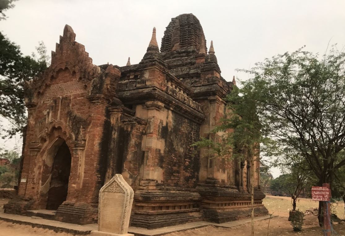 လောကထိပ်ပန်ဘုရားသည် မန္တလေးတိုင်းဒေသကြီး၊ ညောင်ဦးမြို့နယ်၊ ပုဂံမြို့ဟောင်း၊ အနော်ရထာလမ်းမကြီးအနီး၊ တောင်ဖီကျေးရွာအုပ်စု၊ ရွှေဆံတော်ဘုရား၏ မြောက်ဘက်တွင် တည်ရှိပြီး ဂူဘုရားအလတ်စား ဖြစ်ပါသည်။ ကွမ်းတောင်ပေါက် လိုဏ်တစ်ဆင့်ဂူဘုရားဖြစ်ပြီး အေဒီ ၁၂ ရာစု အလောင်းစည်သူမင်းလက်ထက်တွင် တည်ထားခဲ့သော ဂူဘုရားဖြစ်ပါသည်။ အတွင်းနံရံပန်းချီများ လတ်လတ်ဆတ်ဆတ်ရှိပြီး ဆေးရောင်စုံ ခြယ်သထားပါသည်။ ဤဂူဘုရား၏ ထူးခြားချက်မှာ အခြားဘုရားများနှင့်မတူ တမူထူးခြားစွာ ဇာတ်ကြီးဆယ်ဘွဲ့ကို အကျယ်တဝင့်ရေးသားခြယ်လှယ် ဖော်ပြထားပါသည်။ အရှေ့ဘက်နံရံတွင် ဝေဿန္တရာဇာတ်ကို တစ်ပေခန့် အတန်းများနံရံပြည့်ရေးခြယ်ထားသည်။ တိုက်မအနောက်ဘက် နံရံပြည့် (၅၅၀) ဇာတ်ကွက်များနှင့် ဇာတ်ကြီးဆယ်ဘွဲ့တို့ကို ကြားညှပ်ရေးခြယ်ထားရှိပြီး ဇာတ်တော်၊ နိပါတ်တော် ပန်းချီကားများ အောက်ခြေတွင် မင်စာ(ပုံစာ)များကို တွေ့ရပါသည်။ အမျိုးသားနှင့် အမျိုးသမီး ပုံတို့ကိုလည်း မုတ်ဆိတ်မွှေး၊ ပါးသိုင်းမွှေး၊ ဆံထုံးတို့ကိုကြည့်ကာ လွယ်ကူစွာ ခွဲခြားနိုင်အောင် ရေးဆွဲထားသည်။ အမျိုးသမီးတို့၏ ခန္ဓာကိုယ် အလှအပများကို ပေါ်လွင်အောင် ရေးဆွဲထားသည်ကို လေ့လာနိုင်သည်။ နံရံဆေးရေးပန်းချီပါ အကြောင်းအရာများကို ရှေးမွန်ဘာသာနှင့် မြန်မာဘာသာ ကမ္ပည်းစာတို့ဖြင့် ရေးထိုးထားသည်ကို လေ့လာတွေ့ရှိနိုင်ပါသည်။