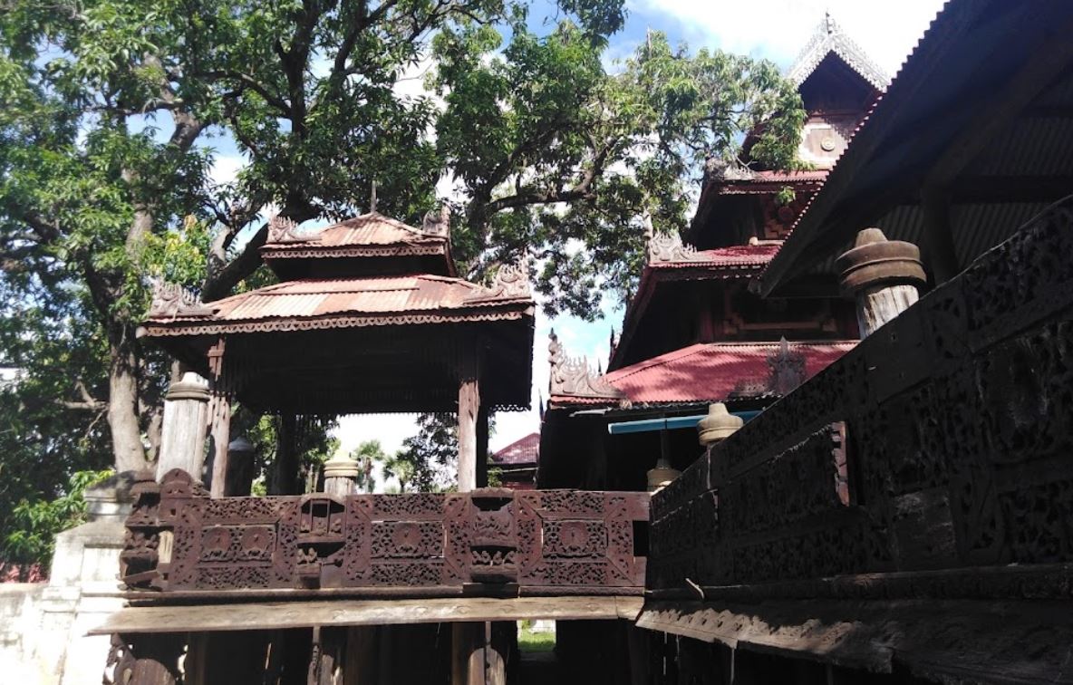 ပွင့်ဖြူမြို့နယ် လယ်ကိုင်းမြို့တွင် တည်ရှိသည်။ လယ်ကိုင်းရုပ်စုံကျောင်းကို မြန်မာသက္ကရာဇ် ၁၂၅၂ ခုနှစ်တွင် ဦးအံတော်နီက ဆောက်လုပ်လှူဒါန်းခဲ့ပါသည်။ ဦးအံတော်နီသည် လယ်ကိုင်းဒေသတစ်ဝိုက်တွင် ဘားဝပ်ကျောင်းကဲ့သို့သော ဘုန်းတော်ကြီးကျောင်းများကို ဆောက်လုပ်လှူဒါန်းခဲ့သော ကျောင်းများဒကာ တစ်ဦးဖြစ်သည်။ လယ်ကိုင်းရုပ်စုံကျောင်းတော်ကြီး တည်ဆောက်မှုစရိတ် ကုန်ကျငွေ ထိုခေတ် ငွေဒင်္ဂါး ၁၇ တောင်းခွဲ ကုန်ကျသည်ဟု မှတ်သားရသည်။ ဦးအန်တော်နီနှင့် ဆွေမျိုးတော်စပ်သူ ကနီသူကြီးက ကျောင်းတည်ဆောက်မည့် ကျွန်းသစ်လုံးများ သယ်ဆောင်ရန် ဆင်များကို အခမဲ့ကူညီခဲ့သည်။ ရုပ်စုံကျောင်းကြီးကို မန္တလေး ရတနာပုံနေပြည်တော်မှ မြန်မာဗိသုကာ ဆရာနှံကြီးနှင့် တပည့်များကို ငှားရမ်း၍ တည်ဆောက်ခဲ့သည်။ ရုပ်စုံကျောင်းကြီးကို ကျွန်းတိုင်ပေါင်း ၂၁၄ တိုင်ဖြင့် ဖွဲ့စည်းတည်ဆောက်ခဲ့ပြီး ပြသာဒ်ဆောင်၊ စနုဆောင်၊ ဆောင်မကြီးနှင့် ဘောဂ ဆောင်တို့ဖြင့် မြန်မာဘုန်းတော်ကြီးကျောင်း အင်္ဂါပြည့်စုံစွာ တည်ဆောက်ခဲ့ပြီး လှေကားရှစ်စင်း တပ်ဆင်ထားသည်။ ယခုအခါတွင် ဆောင်မကြီးနှင့် ဘောဂဆောင်တို့ကိုသာ မြင်တွေ့ကြရသည်။ ဘုံခုနစ်ဆင့် ပြသာဒ်အသီးသီးတွင် ၅၅၀ နိပါတ်ဇာတ်စုံ ပန်းပုလက်ရာရုပ်တုများရှိပြီး ကျောင်းကြီး၏ ထောင့်နေရာများတွင် ဇာတ်ကြီးဆယ်ဘွဲ့ ရုပ်တုများရှိသည်။ လက်ရန်းပတ်လည်တွင် ဗုဒ္ဓဝင်ဇာတ်လမ်းရုပ်စုံများကို သရုပ်ဖော်ထားပြီး တစ်ခန်းနှင့် တစ်ခန်း လက်ရန်းအခန်းအဆက်အစပ် အားလုံးတွင် ဒေါင်းရုပ်များဖြင့် ဆက်စပ်ထားသည်။ ကျောင်းတော်ကြီး ပေါ်တွင် မံဘုရား တစ်ဆူကို ဖူးတွေ့ကြရသည်။