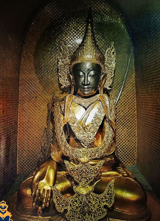 ရန်ကုန်မြို့ ရွှေတိဂုံစေတီတော် အရှေ့ဘက်မုခ် အာရုံခံတန်ဆောင်းအတွင်း တည်ရှိသည်။ ကကုသန္ဓဘုရားရှင်ရုပ်ပွားတော်ဖြစ်ပြီး ညာလက်တော် ပက်လက်၊ ဘယ်လက် ပေါင်ပေါ်တင်လျက် ဝရဒမုဒြာဟန်ဖြင့် ကိန်းဝပ်စံပယ်တော်မူသည်။ လက်ပက်လက်ဘုရား ဟုလည်းကောင်း၊ ရွှေလက်လှန်ဘုရား ဟုလည်းကောင်း ခေါ်ဝေါ်ကြသည်။ လာဘမုနိဘုရား ဟုလည်း ခေါ်ဝေါ်ကြသေးသည်။ စဉ့်ကူးမင်း၏ ကောင်းမှုဖြစ်သော ပဉ္စလောဟာရုပ်ပွားတော် လေးဆူအနက်မှ တစ်ဆူဖြစ်ပါသည်။ လိုဏ်ဂူ၏ အပြင်ဘက်တွင်လည်း ဆင်းတုတော်ကြီး လေးဆူ ရှိသည်။ ထိုဆင်းတုတော်များထဲမှ ဆင်းတုတော် သုံးဆူမှာလည်း ယာလက်တော်ပက်လက် ဝရဒမုဒြာဟန်ဖြင့် ဖူးတွေ့ရသည်။ တတိယမြောက် ဆင်းတုတော်သာလျှင် ယာလက်တော်မှောက်ခုံ ဘူမိဖဿမုဒြာဟန် ဖြစ်သည်။