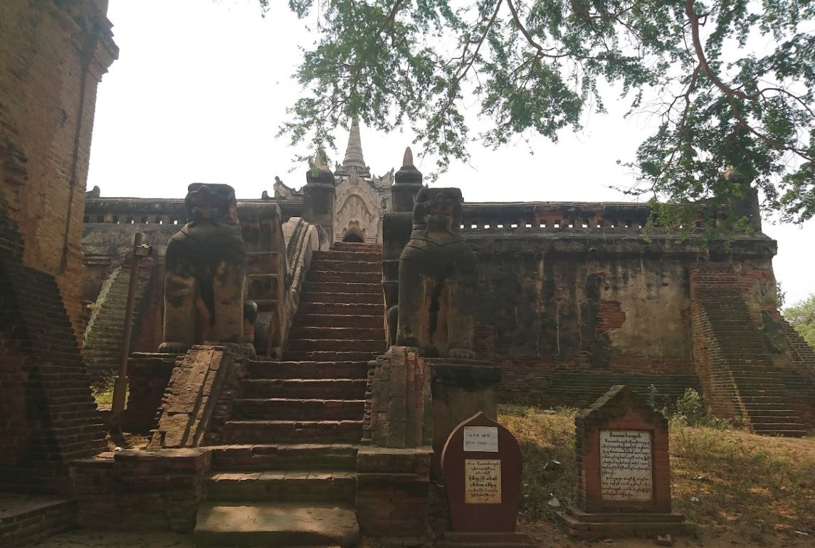မီးမလောင်ကျောင်းသည် မန္တလေးတိုင်းဒေသကြီး၊ ညောင်ဦးမြို့နယ်၊ ပုဂံမြို့ဟောင်း၊ ပုထိုးသားများစေတီတော်၏ အနောက်ဘက်တွင် တည်ရှိပါသည်။ မီးမလောင်ကျောင်းကို စေတီပေါက်လိုဏ်တစ်ဆင့်သဏ္ဌာန် ဂူဘုရားအဖြစ် တည်ဆောက်ထားပါသည်။ မီးမလောင်ကျောင်းကို နရပတိစည်သူမင်းကြီး စတင်တည်ထားခဲ့ခြင်းဖြစ်ပြီး မူလမီးမလောင်ကျောင်းမှာ အုတ်ခုံသာသာကျန်ရှိတော့သည်အထိ ပျက်စီးနေသဖြင့် ကုန်းဘောင်ခေတ်၌ ဆရာတော်ရှင်ပညာ ဒိဗ္ဗက ယင်းအုတ်ခုံပေါ်တွင် အုတ်တိုက်တော်ပြုလုပ်ခဲ့ခြင်းဖြစ်ပါသည်။ ပုဂံမြို့နွားပြဂူဘုရားအတွင်းရှိ နံရံမင်စာတွင် "မီးမလောင်ကျောင်းဘုရားသခင်သည် ပျက်စီးယိုယွင်း၍ အုတ်ပုံမြေတောင်သာရှိသော ဘုရားကိုလည်း အထက်တည်ရင်းထက် ကောင်းအောင် ကျောင်းဆောင်ပြသာဒ် ဆင်ကတ်လက်ယန် လှေကားချင်သေပါ အရာရာဗျိုဝ်ပြက်သမျှကို လုတ်ပြီးလျှင် တင်ပြည်ခွေ ဂတောင်ရှိ ယုတ္တုတော်ကြီးကိုလည်း အကုံရွှေချ၍ ရွှေထီးတင်ပြီးလျှင်"စသည်ဖြင့်ရေးထားသည်ကို တွေ့ရှိရပါသည်။ မီးမလောင်ကျောင်းကို ယခုအခါ လေးထောင့်စပ်စပ်ဂူဘုရားငယ်ထက်၌ အမိုးသုံးဆင့် ဒုယင်တို့ဖြင့် လုပ်ဆောင်လျက် အထက်တွင် စေတီတော်တစ်ဆူတည်ထားသည်ကို ဖူးတွေ့နိုင်ပါသည်။ စင်္ကြံပလ္လင်ထက် စေတီတော်မှာ ဉာဏ်တော် ၃၂ ပေခန့်မြင့်ပါသည်။ အုတ်ခုံမှာမူ ၁၃ ပေခန့်အမြင့်ရှိပြီး မူလကပင် မီးဘေးအန္တရာယ်မှ ကင်းလွတ်စေရန် အမြင့်၌တည်ခဲ့ဟန်ရှိပါသည်။