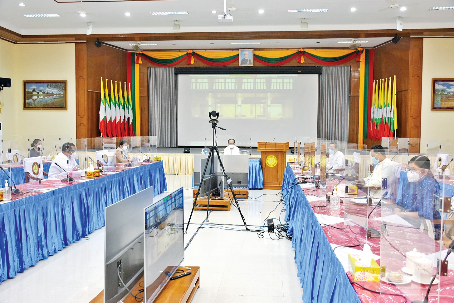 ဂျပန်နိုင်ငံအနေဖြင့် မြန်မာနိုင်ငံ၏ ကိုဗစ်-၁၉ ကာကွယ် ထိန်းချုပ်ရေးလုပ်ငန်းများအတွက် ပံ့ပိုးမှုများလည်း ပေးအပ် လျက်ရှိပါကြောင်း၊ ထိုသို့ ပံ့ပိုးမှုများပေးအပ်သည့် ဂျပန် နိုင်ငံအစိုးရနှင့် ဂျပန်နိုင်ငံ အပြည်ပြည်ဆိုင်ရာ ပူးပေါင်းဆောင် ရွက်ရေးအေဂျင်စီ(JICA) တို့အား ပြည်သူများကိုယ်စား အထူးကျေးဇူးတင်ရှိပါကြောင်း၊ ပြည်သူ့ဆေးရုံကြီး မကွေးမြို့ အဆင့်မြှင့်တင်ရေး စီမံကိန်း လုပ်ငန်းများတွင် ပံ့ပိုးမှုများ ပေးအပ်လျက်ရှိသော မကွေးတိုင်းဒေသကြီး ဝန်ကြီးချုပ်နှင့် တာဝန်ရှိသူများကိုလည်း အထူးကျေးဇူးတင်ရှိပါ ကြောင်း၊ လက်ရှိတွင် တိုင်းဒေသကြီး/ပြည်နယ်များ၌ "ပါးစပ်နှင့် နှာခေါင်းစည်း မဖြစ်မနေတပ်ဆင်ရေး လူထု လှုပ်ရှားမှုစီမံချက်" ကို အရှိန်အဟုန်ဖြင့် ဆောင်ရွက်လျက် ရှိရာ တိုင်းဒေသကြီး/ပြည်နယ် အစိုးရအဖွဲ့များအနေဖြင့် ပံ့ပိုးမှုများ ပေးအပ်ပါရန် မေတ္တာရပ်ခံအပ်ပါကြောင်း ပြောကြားသည်။