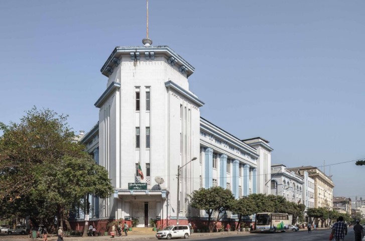 ရန်ကုန်မြို့၊ ကျောက်တံတားမြို့နယ်၊ ပန်းဆိုးတန်းလမ်း၊ အမှတ် (၂၇/ ၄၁) တွင် တည်ရှိသည်။ Reserve Bank of India (ယခု ရန်ကုန်စတော့အိပ်ချိန်းရုံး) ကို ဒီဇိုင်းရေးဆွဲတည်ဆောက်ခဲ့သော G Douglas Smart မှ ၁၉၃၉ ဒီဇိုင်းရေးဆွဲ တည်ဆောက်ခဲ့ပြီး ၁၉၄၁ ခုနှစ်တွင် ပြီးစီးခဲ့ကာ Chartered Bank of India၊ Australia and China ဘဏ်အဖြစ် ဖွင့်လှစ်ခဲ့သည်။ အဆောက်အအုံ၏ အောက်တွင် ရန်ကုန်မြို့၏ ပထမဆုံး မြေအောက်ကားပါကင် ထည့်သွင်းတည်ဆောက်ခဲ့သည်။ ဂျပန်ခေတ်တွင် Yokohama Specie Bank ၏ ဘဏ်ခွဲအဖြစ် အသုံးပြုခဲ့သည်။ လွတ်လပ်ရေးရပြီးကာလမှစ၍ ၁၉၆၃ ခုနှစ် ပြည်သူပိုင်မသိမ်းခင်အထိ Chartered Bank အဖြစ် ဆက်လက်ဖွင့်လှစ်ခဲ့သည်။ ၁၉၈၈ ခုနှစ်တွင် မြန်မာ့ဆိုရှယ်လစ်လမ်းစဉ်ပါတီ (မဆလ) ပြိုကွဲပြီးနောက် အဆောက်အအုံကို ဘဏ္ဍာရေးနှင့် အခွန်ဝန်ကြီးဌာနသို့ လွှဲပြောင်းပေးအပ်ခဲ့သည်။ နောက်ပိုင်းတွင် မြန်မာစီးပွားရေးဘဏ်၏ ဘဏ်ခွဲအဖြစ်ဖွင့်လှစ်ခဲ့ပြီး ယင်းအဆောက်အအုံကိုလည်း ရန်ကုန်မြို့ပြအမွေအနှစ်ရှေးဟောင်းအဆောက်အအုံအဖြစ် သတ်မှတ်ထားသည်။