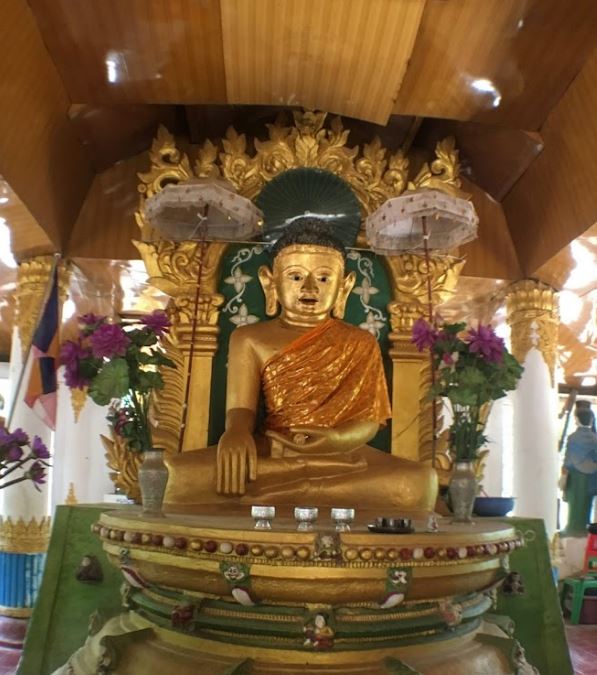 မြောက်ဦးမြို့ မင်္ဂလမာရ်အောင်စေတီ၏ အရှေ့တောင်ဘက် ကိုက် ၁၀၀ ခန့်အကွာတွင် တည်ရှိသည်။ ကောဇာသက္ကရာဇ် ၉၉၁ ခုနှစ် (အေဒီ ၁၆၂၉)တွင် ဘုရင်သီရိသုဓမ္မရာဇာနှင့် မိဖုရားကြီးနတ်သျှင်မယ်တို့ တည်ထားကိုးကွယ်ခဲ့သည်။ ကျောက်သားပကတိ ဆင်းတုတော်ဖြစ်ပြီး ဉာဏ်တော်အမြင့် ၇ ပေ ၇ လက်မရှိသည်။ ပလ္လင်တော်သည် ကျောက်ဆစ်လက်ရာများဖြင့် လှပတင့်တယ်သည်။ ဘုရားသိမ်တော်၏ အရပ်လေးမျက်နှာ၌ ကျွန်းကြီးလေးကျွန်းမှ ယောက်ျားတစ်ဦးနှင့် မိန်းမတစ်ဦးစီ ယှဉ်တွဲရပ်နေသော ရုပ်တုများကို မြင်တွေ့နိုင်သည်။ ထို့ပြင် နန်းဦးဘုရားမှ အနောက်တောင်ဘက် ကိုက် ၁၅၀ ခန့်အကွာတွင် မြောက်ဦးမြို့တော်ဟောင်း၏ မြို့ရိုးတံတိုင်း၊ ကျောက်သားဖြင့် ပြုလုပ်ထားသော ပစ္စင်၊ ပြအိုး၊ မြို့တံခါး၊ အမြောက်လက်နက်များ တပ်ဆင်ခဲ့သည့်အပေါက်နေရာဟောင်းများ စသည်ဖြင့် လေ့လာနိုင်သည်။