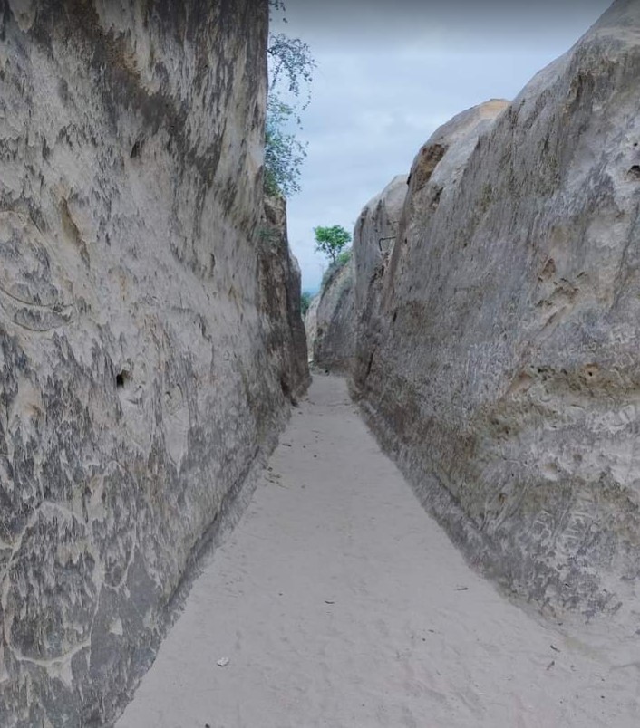 မကွေးတိုင်းဒေသကြီး၊ ရေနံချောင်းမြို့အရှေ့ဘက် မြို့ရှောင်လမ်းအနီး၊ နတ်ကန်ဦးရွာသို့ အသွားလမ်းတွင် တည်ရှိသည်။ ကျောက်တောင်နှစ်ခုကြားတွင် လမ်းကဲ့သို့ဖြစ်နေပြီး ယင်းလမ်း၏ဘေး ကျောက်သားနံရံကြီး၏ အမြင့်ဆုံးနေရာမှာ ၃၁ ပေထိအမြင့်ရှိကာ လမ်းအရှည် ၁၈၇၁ ပေရှိသည်။ ဓာတ်ပုံဝါသနာရှင်များ ဓာတ်ပုံရိုက်ရန်နှင့် ဘူမိဗေဒပညာရှင်များ လေ့လာရန်အတွက် သင့်တော်သော နေရာတစ်ခုဖြစ်သည်။