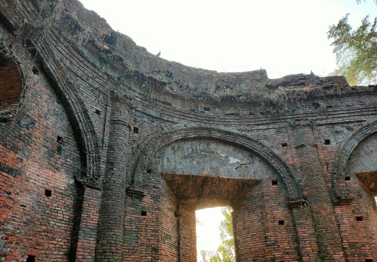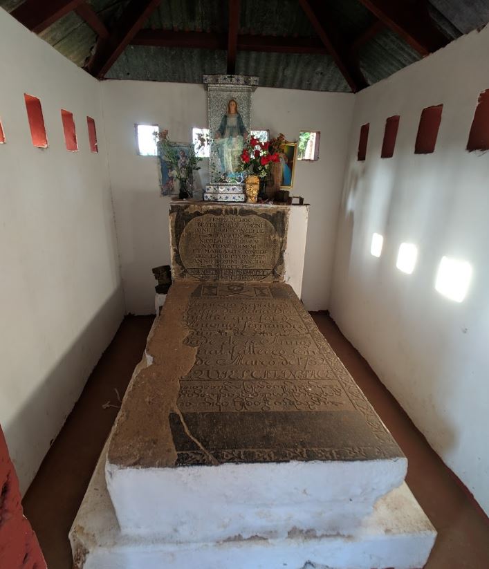 - NICOLAI DE AGUALAR NATIONE AR MENI ET MARGARITE CONJUGIS ERE EXTRUCTUM EST ANNO DOMINI SANCTO M DCCL- အေဒီ ၁၇၅၀ ခုနှစ်တွင် အာမေးနီးယန်းကုန်သည်ကြီးများမှ ဤဘုရားကျောင်းအား ဆောက်လုပ်လှူဒါန်းပြီးစီးသည် ဟု အဓိပ္ပါယ်ရပါသည်။