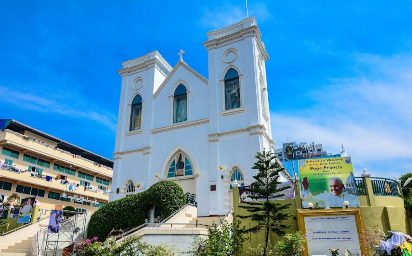 ရန်ကုန်မြို့၊ မင်္ဂလာတောင်ညွန့်မြို့နယ်၊ အထက်ပန်းဆိုးတန်းလမ်း၊ အမှတ် (၂၄) တွင် တည်ရှိသည်။ ဘုရားကျောင်းကို ၁၈၇၅ ခုနှစ် ဖေဖော်ဝါရီလ ၁၈ ရက်နေ့တွင် ဆရာတော် Paul Bigandet မှ ဦးဆောင်၍ အုတ်မြစ်ချစတင်တည်ဆောက်ခဲ့ပြီး ၁၈၇၇ ခုနှစ် နိုဝင်ဘာလ ၁၈ ရက်နေ့တွင် ပြီးစီးခဲ့သည်။ ၂၀၀၂ ခုနှစ်တွင် ဘုန်းတော်ကြီး Rev, Fr.S. S. Arul က ဦးစီး၍ ပြန်လည်ပြုပြင်ခဲ့သည်။ ဘုရားကျောင်းကို ၁၈၇၅ ခုနှစ်မှ ၁၉၄၆ ခုနှစ်အထိ ပြင်သစ်နိုင်ငံ ပါရီမြို့ရှိ နိုင်ငံခြားမစ်ရှင် ဘုန်းတော်ကြီးများမှ ဦးစီးဆောင်ရွက်ခဲ့ပြီး ၁၉၄၆ ခုနှစ်မှ ယနေ့အထိ ရန်ကုန်ရှိ ဒေသခံ တမီးလ်ဘုန်းတော်ကြီးများမှ ဦးစီဆောင်ရွက်လျက်ရှိသည်။ ယခုအခါ ယင်းစိန့်အန်ထော်နီဘုရားကျောင်း အဆောက်အအုံသည် ရန်ကုန်မြို့ပြရှေးဟောင်းအမွေအနှစ် အဆောက်အအုံများ စာရင်းတွင် တစ်ခုအပါအဝင်ဖြစ်သည်။