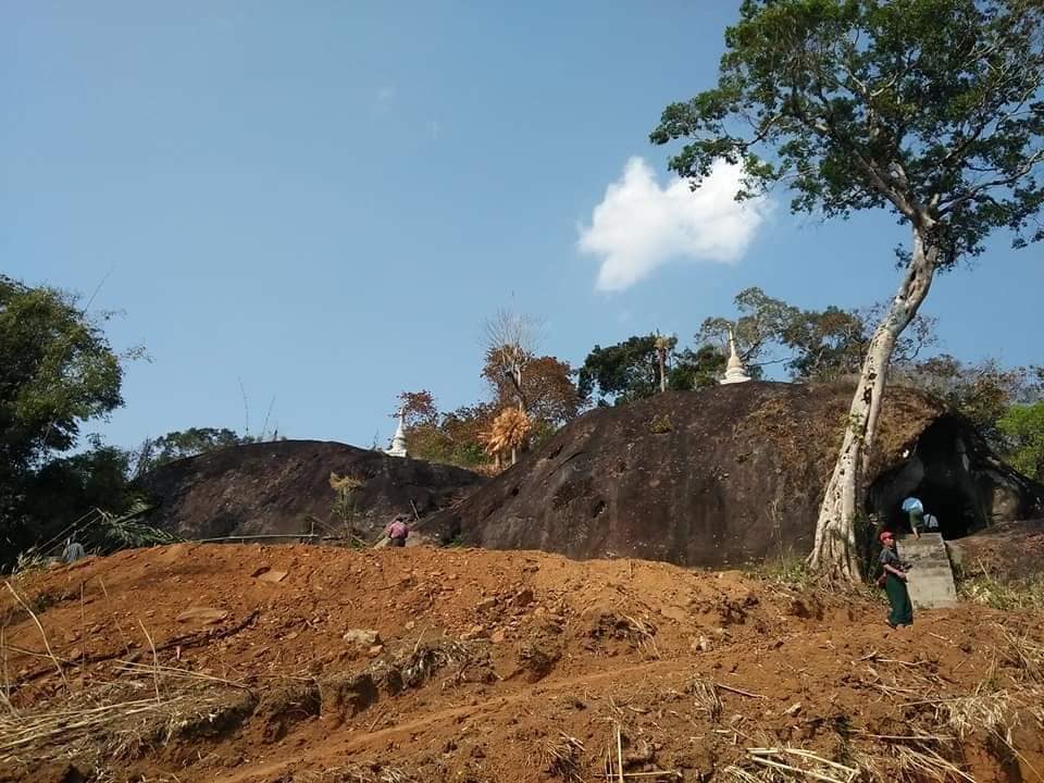 ဘုရားရှင်သည် ဇာလီယမည်သော ကွန်ချာတောင်၌ ဝါဆိုတော်မူစဉ် သုံးကျိပ်ငါးပါးသော ရဟန်းများသည် ဘုရားရှင်ထံမှ ကမ္မဌာန်းယူခဲ့ပြီး တရားကျင့်ရန်ဌာနကို ရှာဖွေကြစဉ် သိကြားမင်းက ဝိသကြုံနတ်သားကို စေလွှတ်ပြီးရဟန်းတော်များ တရားကျင့်ကြရန် ယခုလိုဏ်ဂူတော်ကြီးကို ဖန်ဆင်းစေသည်ဟုဆိုပါသည်။ ရဟန်းတော်သုံးကျိပ်ငါးပါးတို့သည် ထိုလိုဏ်ဂူတော်၌ ရဟန်းကိစ္စပြီးဆုံးကြ၍ နောင်လူနောက်သားအများ ကုသိုလ်တရား တိုးပွားကြစေရန် ခြေတော်ရာချထားခဲ့သည်ဟု ဆိုပါသည်။ ထိုရဟန္တာအရှင်မြတ်တို့သည် ထိုလိုဏ်ဂူတော်မှ အရှေ့မြောက်တစ်ယူဇနာခန့်ကွာသော ချောင်းငယ်တွင် ခန္ဓပရိနိဗ္ဗာန်ဝင်စံကြသောကြောင့် ၎င်းချောင်းကိုယနေ့အထိ ဓာတ်ချောင်းဟုခေါ်ကြပါသည်။ ၎င်းချောင်းအတွင်း ကျရောက်သော သစ်ခက်သစ်ရွက်မှအစ အားလုံး ဓာတ်တော်ဖြစ်သည်ဟုလည်း ဆိုပါသည်။ လိုဏ်ဂူတော်သည် မဲဇာမြစ်ဖျားမှ အတော်ဝေးကွာသေးသဖြင့် ပျောက်ကွယ် ၍နေသည်ကို ကောဇာသက္ကရာဇ် ၁၃၅၇ ခုနှစ်၊ ကဆုန်လတွင် ဆရာတော်များ ဦးစီးသော လိုဏ်ဂူရှာဖွေရေးအဖွဲ့မှ ညဥ့်အိပ်ညဥ့်နေ မရမနေ ရှာဖွေခဲ့သောကြောင့် ယခုအခါ လိုဏ်ဂူတော်ကြီးနှင့်တကွ ဓါတ်တော်ချောင်းကိုပါ ပြန်လည် တွေ့ရှိပြီ ဖြစ်ပါသည်။