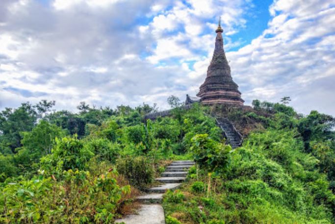 ဤစေတီနှစ်ဆူသည် မြောက်ဦးမြို့ နန်းတော်ကုန်း၏အရှေ့ဘက် ပေ ၁၀၀ ခန့်စီမြင့်သော တောင်ကုန်းနှစ်ခုတွင် အသီးသီးတည်ရှိသည်။ ယခင်မင်းဗာကြီးတည်ထားခဲ့သော မြတ်စွာဘုရား၏ နံရိုးတော်ဓာတ်နှင့် ရင်ရိုးတော်ဓာတ်တို့ကို ဌာပနာထားသော စေတီနှစ်ဆူတို့မှာ လက်ဆည်ကန်အနီးတွင် လူနေအိမ်ခြေတို့နှင့်နီးကပ်စွာ တည်ရှိနေသဖြင့် ကောဇာသက္ကရာဇ် ၁၀၀၁ ခုနှစ် (အေဒီ ၁၆၃၉) တွင် နရပတိကြီးမင်းသည် ထိုစေတီနှစ်ဆူမှ ဓာတ်တော်များကို ပြောင်းရွှေ့ပင့်ဆောင်လျက် လက်ရှိနေရာ၌ တည်ထားကိုးကွယ်ခဲ့ခြင်းဖြစ်သည်။ နရပတိကြီးမင်းသည် ထီးနန်းကို မစိုးစံရသေးမီ လောင်းကြက်စား ငကုသလအမတ်ဘဝတွင် ကိုယ်တိုင်ဗေဒင်တွက်ချက်မှုအရ မိမိထီးနန်းစိုးစံရမည်ကို ကြိုတင်ထင်မြင်ခဲ့သည်။ ယင်းကြောင့် နံရိုးတော်ဓာတ်ကို ဌာပနာ၍ စေတီတည်ထားသောအခါ ထင်တော်မူစေတီဟု ဘွဲ့အမည်ဆက်ကပ်ပြီး ရင်ရိုးတော်ဓာတ်စေတီကို မြင်တော်မူစေတီဟု ဘွဲ့အမည်ဆက်ကပ်ခဲ့သည်။