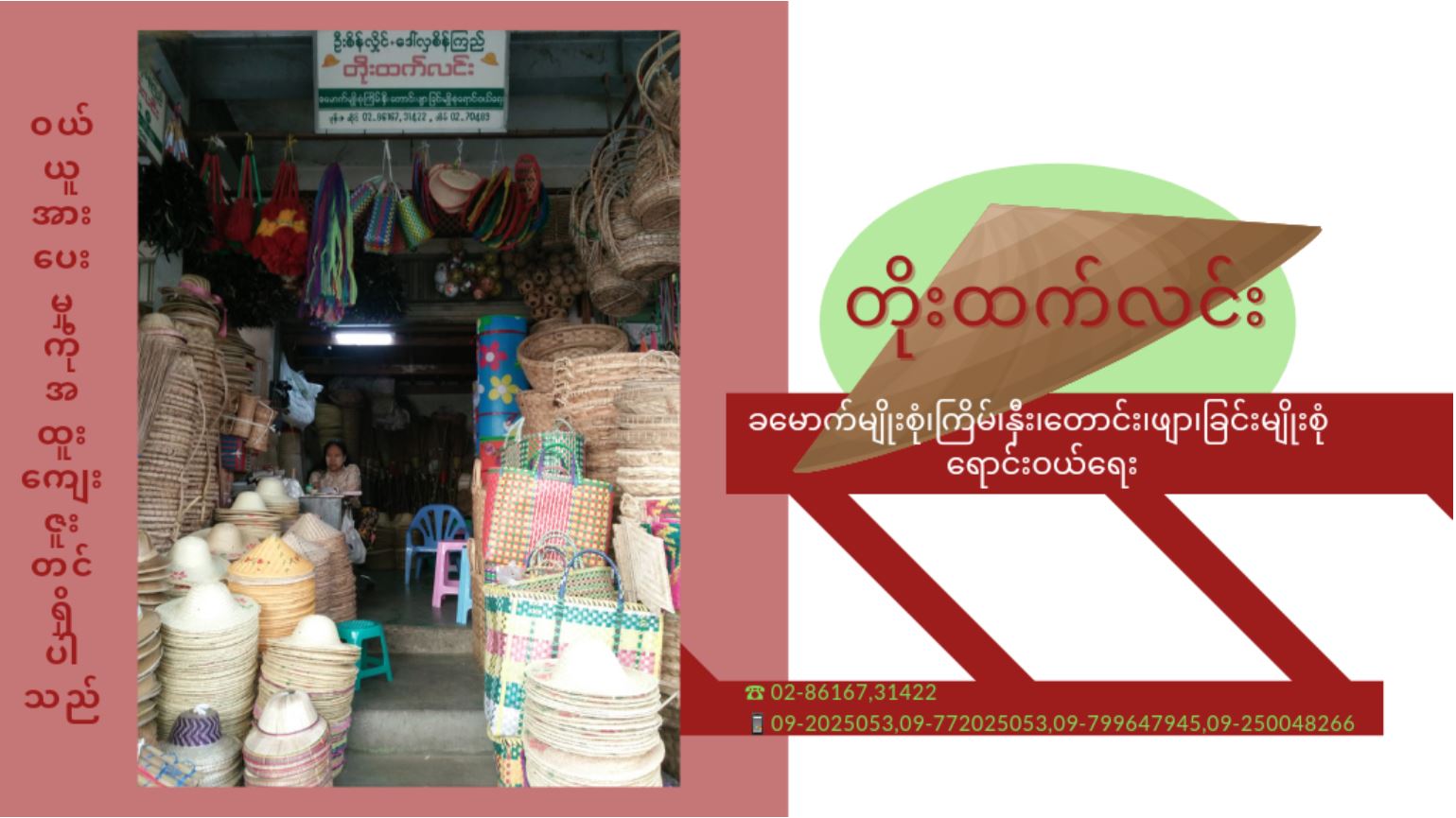 တိုးထက်လင်း (ခမောက်မျိုးစုံ၊ ကြိမ်၊ ဖျာမျိုးစုံရောင်းဝယ်ရေး)