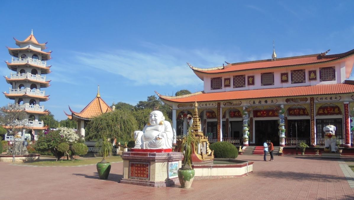 တရုတ်ဘုံကျောင်းသည် ပြင်ဦးလွင် (ခေါ်) မေမြို့သို့ရောက်လျှင် သွားရောက်လည်ပတ်သင့်သည့် နေရာတစ်ခုဖြစ်ပါသည်။ ဘုံကျောင်းဝန်းအတွင်း သက်သက်လွတ် စားသောက်ဆိုင်တစ်ဆိုင်တည်ရှိပြီး ဘုံကျောင်းအတွင်းတွင် ဗေဒင်ဝါသနာပါသူများ တရုတ်ဝါးဗေဒင်မေးနိုင်ပါသည်။ ဘုံကျောင်းဝန်းအတွင်းရှိ ဘုံခုနစ်ဆင့်ကျောင်းဆောင်၏ အပေါ်ဆုံးထပ်သို့တက်ရောက်နိုင်ကာ ပြင်ဦးလွင်မြို့ရှုခင်းအလှအပများကို ခံစားကြည့်ရှုနိုင်ပါသည်။