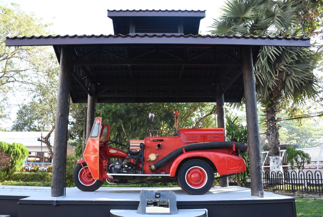 ရန်ကုန်တိုင်းဒေသကြီး၊ မရမ်းကုန်းမြို့နယ်၊ အမှတ် (၅) ရပ်ကွက်၊ အုတ်ပုံဆိပ်လမ်း၊ မြန်မာနိုင်ငံမီးသတ်တပ်ဖွဲ့ဌာနချုပ်တွင် တည်ရှိပါသည်။ ပြတိုက်ကို ၂၀၂၂ ခုနှစ်၊ ဖေဖော်ဝါရီလ ၁၀ ရက်နေ့တွင် စတင်ဖွင့်လှစ်ခဲ့ပါသည်။ Myanmar Fire Museum ပြတိုက်တွင် ကိုလိုနီခေတ်မှ ခေတ်အဆက်ဆက် မြို့ပြ၊ ကျေးလက် ဒေသအနှံ့အသုံးပြုခဲ့သည့် မီးသတ်ယာဉ်များအနက်မှ သက်တမ်းရှေးကျဆုံး မီးသတ်ယာဉ်များအား ခေတ်အလိုက် ခင်းကျင်းပြသထားပြီး ကမ္ဘာပေါ်တွင် AD ၆၄ ခုနှစ် အီတလီနိုင်ငံ ရောမမြို့ မီးလောင်မှုကြီး (The Great Fire of Rome)မှစ၍ အင်္ဂလန်နိုင်ငံ လန်ဒန်မြို့မီးလောင်မှုကြီး (The Great Fire London)၊ အမေရိကန်နိုင်ငံ နယူးယောက်မီးလောင်မှုကြီး (The Great Fire New York) စသော ကြီးမားသည့် မီးလောင်မှုကြီးများကြောင့် မီးငြှိမ်းသတ်ရေးကိရိယာများကို တီထွင်လာခဲ့ပြီး မီးသတ်ပန့်များကို ဘီစီ ၃ ရာစုတွင် လည်းကောင်း၊ ၁၈၄၁ ခုနှစ်တွင် ပထမဆုံး ရေနွေးငွေ့စွမ်းအင်သုံး မီးသတ်စက်များကိုလည်းကောင်း အသုံးပြုခဲ့ပြီး ထိုမှတစ်ဆင့် ၂၀ ရာစုဦးပိုင်းတွင် မီးသတ်ယာဉ်အား တီထွင်အသုံးပြုခဲ့ရာ မြန်မာနိုင်ငံသို့ ၁၉၀၉ ခုနှစ်တွင် စတင်ရောက်ရှိလာသည့် Fire King ဟု တင်စား ခေါ်ဝေါ်ရသော ကမ္ဘာ့ရှေးဟောင်း မီးသတ်ယာဉ်အမျိုးအစားများတွင် ပါဝင်သည့် Merryweather (STEAM) နှင့် Merryweather(Petrol) ကဲ့သို့ မီးသတ်ယာဉ်များကိုလည်း ထည့်သွင်းပြသထားပါသည်။