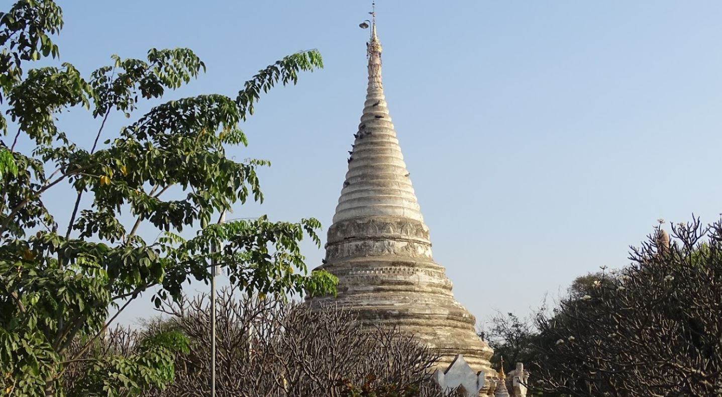 ရှင်ပင်ပွင့်လင်းဘုရားသည် မန္တလေးတိုင်းဒေသကြီး၊ ညောင်ဦးမြို့နယ်၊ ပုဂံမြို့ဟောင်း၊ ကန်တော့ပလ္လင်ဘုရားမြောက်ဘက်တွင် တည်ရှိပါသည်။ ရှင်ပင်ပွင့်လင်းဘုရားသည် ကန်တော့ပလ္လင်ဘုရားသမိုင်းနှင့် ဆက်စပ်လျက်ရှိပါသည်။ အလောင်းစည်သူမင်းသည် ဘေးတော်၊ ဘိုးတော် မင်းကောင်းမင်းမြတ်တို့ကို ဝဇီကံအားဖြင့် ပြစ်မှားပြောဆိုမိ၍ မျက်စိနှစ်ကွင်း အလင်းကွယ်ခဲ့ပြီး ပုဏ္ဏားတို့၏အကြံပေးချက်အရ ဘေးတော်၊ ဘိုးတော် မင်းမြတ်တို့၏ ပုံတူရုပ်တုများပြုလုပ်၍ ယခုကန်တော့ပလ္လင်ဘုရားတည်ရှိရာမြေပေါ်တွင် ရှိခိုးကန်တော့ခဲ့ပြီး ထိုနေရာမှ မြောက်အရပ်သို့ထွက်ခွာသော် ယခု ရှင်ပင်ပွင့်လင်းဘုရားတည်ရှိရာနေရာသို့ရောက်ချိန်၌ မျက်စိနှစ်ကွင်း အလင်းပြန်ရခဲ့သဖြင့် ရှင်ပင်ပွင့်လင်းဘုရားတည်ထားခဲ့သည်ဟု ဆိုပါသည်။