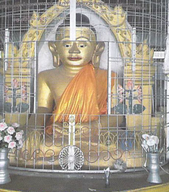 မြောက်ဦးမြို့ မှောက်တော်တံခါး (ပေါင်းဝတံခါး)အနီးရှိ ပြင်ဈီးအရပ်၌ တည်ရှိသည်။ သိမ်ထဲတွင် ဉာဏ်တော်အမြင့် ၈ ပေ ၈ လက်မရှိသော ကျောက်ဆင်းတုတော်ကြီးတစ်ဆူ ကိန်းဝပ်တော်မူလျက်ရှိသည်။ ဘုရင်ဘစောဖြူမင်းနှင့် အနောက်နန်းမိဖုရားတို့မှ ဖွားမြင်သော မင်းသမီး မှောက်တော် စောရွှေကြာသည် မိမိအားမွေးဖွားခဲ့ရာ ကုန်းတော်၌ ကောဇာသက္ကရာဇ် ၈၃၃ ခုနှစ် (အေဒီ ၁၄၇၁)တွင် ဤဘုရားကြီးကို ဂူသိမ်တော်ကြီးဖြင့် တည်ထားကိုးကွယ်ခဲ့သည်။ မင်းသမီးစောရွှေကြာ တည်ထားကိုးကွယ်ခဲ့သဖြင့် ရွှေကြာသိမ်ဘုရားကြီးဟု အမည်တွင်ခဲ့သည်။ ယခုအခါ ဂူသိမ်တော်ကြီး ပျက်စီးသွားပြီဖြစ်၍ အုတ်တံတိုင်းသိမ်တော်ကြီး ဆောက်လုပ်လျက် ပူဇော်ထားရှိသည်။