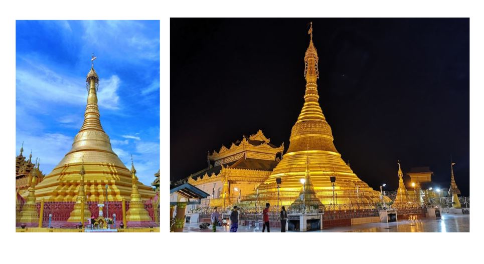 စေတီတော်နှစ်ဆူလုံးမှာ မွန်ပြည်နယ် ရေးမြို့ မြို့လယ် ရန်ကြီးအောင်ရပ်ကွက်တွင် တည်ရှိပြီး တစ်ဆူနှင့်တစ်ဆူ အနည်းငယ်သာ ကွားဝေးပါသည်။ သမိုင်းအရ မြတ်စွာဘုရားရှင်သည် သုဝဏ္ဏဘူမိဒေသသို့ ကြွချီလာစဉ် ဆံတော်များပေးအပ်ချီးမြှင့်ခဲ့ရာ ကလိန်စေ့တောင်ရသေ့သည် မိမိရရှိသော ဆံတော်ရှစ်ဆူကို ဆူးရစ်ပင်များရှိရာ ဆူးရစ်ချုံကုန်းတွင် ဆံတော်လေးဆူဌာပနာ၍ စေတီတစ်ဆူနှင့် စကားပင်များပေါက်ရာ စကားတောင်ကုန်းတွင် ဆံတော်လေးဆူဌာပနာ၍ စေတီတစ်ဆူ တည်ထားကိုးကွယ်ခဲ့သည်ဟုဆိုသည်။ ကောဇာသက္ကရာဇ် ၉၇ ခုနှစ်တွင် အဝိဇ္ဇာဇေယျပူရမြို့(ယခု ရေးမြို့)ကို တည်ထောင်သော မာရဒေဝီမင်းသမီးသည် ဆူးရစ်ချုံကုန်းစေတီနှင့် စကားပင်ကုန်းစေတီနှစ်ဆူကို ပြန်လည်တည်ထားကာ ဆူးရစ်ချုံကုန်းစေတီကို (ကျာ်ဒ်ုချာဲ) ဟူ၍လည်းကောင်း၊ မြို့လယ်တွင် တည်ရှိခြင်းကြောင့် ကျာ်ဒေါဝ်ဍိုင် (မြို့လယ်ဘုရား) ဟူ၍လည်းကောင်း၊ စကားတောင်စေတီကိုမူ မွန်အမည် ကျာ်ဒ်ုပါ့ ဟူ၍ လည်းကောင်း ဘွဲ့တော်သမုတ်ခဲ့ကြသည်။ ကာလကြာလာသော် ဆူးရစ်ချုံကုန်းစေတီကို ဆံတော်ဓာတ်များကို အကြောင်းပြုပြီး ရွှေဆံတော်စေတီဟုလည်းကောင်း၊ စကားပင်ကုန်းစေတီကို စကားပင်များရှိရာ တောင်ကုန်းတွင် တည်ထားခဲ့သောကြောင့် စကားတောင်စေတီဟုလည်းကောင်း ခေါ်တွင်လာကြသည်။ မာရဒေဝီမင်းသမီး နန်းသက် ၃၅ နှစ် စိုးစံပြီး ကောဇာသက္ကရာဇ် ၁၂၉ ခုနှစ်တွင် နတ်ရွာစံခဲ့ရာ အမတ်ကြီးတိက္ခက ထီးနန်းဆက်ခံ၍ အမတ်ငယ်တစ်ဦး ထပ်မံထီးနန်းဆက်ခံပြီးနောက် ကောဇာသက္ကရာဇ် ၁၅၁ ခုနှစ် မင်းဆက်ပြတ်ပြီး မြို့လည်းပျက်သုဉ်းခဲ့သည်။ စေတီနှစ်ဆူလည်း ထပ်မံပျက်ပြီး နှစ်ပေါင်း ၆၅၀ ခန့် တောကြီးဂနိုင်၌ ဆိတ်သုဉ်းပျောက်ကွယ်ခဲ့သည်။ ကောဇာသက္ကရာဇ် ၈၀၀ ပြည့်နှစ်တွင် ဟံသာဝတီပြည့်ရှင် ဓမ္မစေတီမင်းက ပျက်စီးဆိတ်သုဉ်းနေသော အဝိဇ္ဇာဇေယျပူရမြိုဟောင်း (ရေးမြို့ဟောင်း)ကို ရာဇသီဟဇေယျပူရမြို့အဖြစ် မြိုသစ်တည်တော်မူပြီး စေတီတော်နှစ်ဆူကိုလည်း ပြန်လည်တည်ထားကိုးကွယ်ခဲ့သည်။ အင်္ဂလိပ်ခေတ်တွင် ရေးမြို့သူမြို့သားတို့သည် အရပ်ရပ်ကြပ်တည်းမှုဒဏ်ကြောင့် စေတီနှစ်ဆူကိုလည်း ပြုပြင်မွမ်းမံသူမရှိသဖြင့် ဟောင်းနွမ်းပျက်စီး၍ အုတ်အင်္ဂတေများ ပြိုကျကာ ဘုရားငုတ်တိုများအဖြစ်သို့ ရောက်ခဲ့ရသည်။ ကောဇာသက္ကရာဇ် ၁၂၄၆ ခုနှစ်၊ နတ်တော်လတွင် ရေးမြို့၊ မရမ်းကျောင်းတိုက်ဆရာတော် ဦးဥတ္တမ ဦးစီးသည့် ရဟန်းသံဃာများ၊ ဒါယကာ၊ ဒါယိကာများက စေတီဟောင်းနှစ်ဆူကို ဖြိုဖျက်၍ အသစ်ပြန်လည်တည်ထားကိုးကွယ်ခဲ့သည်။ ထို့နောက် ခေတ်အဆက်ဆက် စေတီတော်နှစ်ဆူ၏ ဉာဏ်တော်များကို မြှင့်တင်ကိုးကွယ်ခဲ့ကြရာ မျက်မှောက်ခေတ်တွင် ရွှေဆံတော်စေတီတော်သည် ရင်ပြင်တော်မှ စိန်ဖူ
