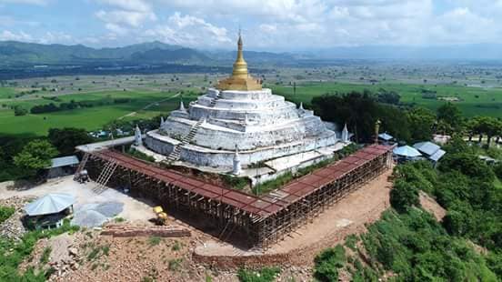 မန္တလေးတိုင်းဒေသကြီး ကျောက်ဆည်မြို့နယ် ရွှေသိမ်တော်ဘုရား အရှေ့မြောက်ဘက် ရွှေသိမ်တော်တောင်ကုန်းပေါ်တွင် တည်ရှိပါသည်။ ၂၀၁၆ ခုနှစ် ဇွန်လတွင် ဘုရားအောက်ခြေများ ပြိုကျပျက်စီးလာသဖြင့် တောင်လွယ်ကျေးရွာမှ ရွာသားများက သွားရောက်ပြုပြင်ရာမှ မူလစေတီရာများ တွေ့ရှိရသဖြင့် ရှေးဟောင်းကျွမ်းကျင်သူ ပညာရှင်များအားပြသရာ စေတီတော်သည် အနော်ရထာမင်း တည်ထားခဲ့သည့် ရှေးဟောင်းစေတီတစ်ဆူအား ငုံ၍တည်ထားခဲ့သည့် စေတီဖြစ်ကြောင်း သိရှိရပါသည်။ သက္ကရာဇ် ၆၃၀ ဝန်းကျင်တွင် ဥဇနာမင်းက ထပ်မံပြုပြင်ခဲ့ပါသည်။ ထို့နောက်ပိုင်းတွင် ဒေါ်သိန်းညွန့်က မူလစေတီဟောင်းပေါ်တွင် ပစ္စယံငါးဆင့်ပါ စေတီတော်ကို ထပ်မံတည်ထားခဲ့သည့်အတွက် လက်ရှိကာလတွင် စေတီအသစ်ပုံစံ ဖူးမြော်မြင်တွေ့ရပါသည်။