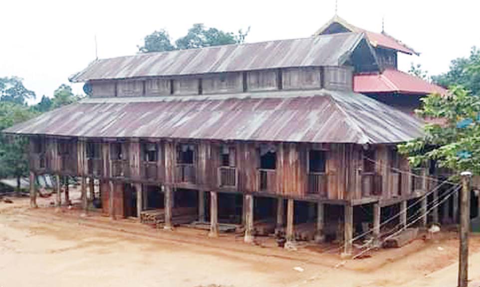 စစ်ကိုင်းတိုင်းဒေသကြီး ဗန်းမောက်မြို့နယ် မူးသားအုပ်စု ကစောက်ဖာကျေးရွာ၌ တည်ရှိသည့် နှစ်ပေါင်း ၁၀၀ နီးပါးသက်တမ်းရှိ ဘုန်းတော်ကြီးကျောင်း ဖြစ်ပါသည်။ သက္ကရာဇ် ၁၂၈၆ ခုနှစ် တပို့တွဲလဆန်း ၁၁ ရက် ဗုဒ္ဓဟူးနေ့တွင် ကနန်းဒေသစိတ်မှ လက်သမားဆရာ ၁၅ ဦးနှင့် ကစောက်ဖာကျေးရွာမှ ရွာသူရွာသားများဝိုင်းဝန်း၍ စတင်တည်ဆောက်းခဲ့ပါသည်။ ကနန်းတိုင်းရင်းသားတို့၏ ရှေးရိုးလက်ရာ ယင်းဘုန်းတော်ကြီးကျောင်းသည် အလျား ၁၅၀ ပေ၊ အနံ ပေ ၁၀၀ နှင့် အမြင့် ၄၀ ပေရှိပြီး ဥရုတိုင် ခြောက်တိုင်မှာ တစ်တိုင်လျှင် အရှည်ပေ ၄၀ ရှိပါသည်။ ထို့အတူ လုံးပတ် ၃ ပေ ၁၀ လက်မရှိသော ကျွန်းသားတိုင် ၁၅၉ တိုင်၊ အခန်းပေါင်း ၁၂၉ ခန်း၊ လှေကား ၄ စင်းပါရှိသည်။