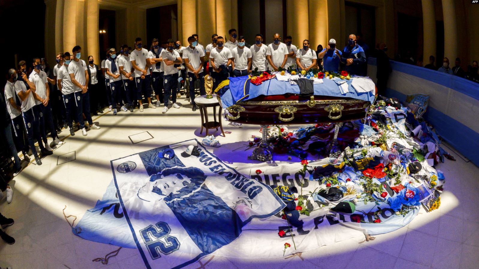 ကမ္ဘာကျော်ဘောလုံးသမား Diego Maradona ရဲ့ နာရေးအခမ်းအနားကိုတော့ မနေ့ ကြာသပတေးနေ့က ကျင်းပခဲ့ပြီး၊ မြေမြုပ်သဂြိုဟ်ခဲ့ကြပါတယ်။ မိသားစုဝင်တွေနဲ့ သီးသန့်ကျင်းပခဲ့တဲ့ မာရာဒိုနာရဲ့ နာရေးအခမ်းအနားကို လူ ၂ ဒါဇင်ပဲ တက်ရောက်ခဲ့တာဖြစ်ပါတယ်။ Jardin Bella Vista သုဿန်မှာ လုပ်တဲ့ ဒီနာရေးအခမ်းအနားကို မိသားစုဝင်တွေ နဲ့ အလွန်နီးစပ်တဲ့ မိတ်ဆွေသူငယ်ချင်းတွေပဲ တက်ရောက်ခဲ့တာဖြစ်ပါတယ်။ မာရာဒိုနာရဲ့ ရုပ်အလောင်းကိုတော့ သူ့ရဲ့မိဘ ၂ ပါး အုတ်ဂူဘေးမှာ မြှုပ်နှံခဲ့တာဖြစ်ပါတယ်။