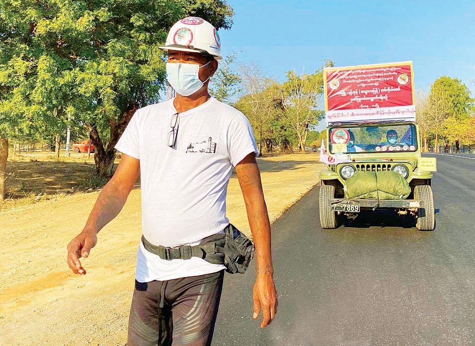 ကိုဗစ်-၁၉ ရောဂါ ကာကွယ်ထိန်းချုပ် ကုသရေးလုပ်ငန်းများတွင် ကြိုးပမ်း ဆောင်ရွက်နေကြသော ကျန်းမာရေး ဝန်ထမ်းများနှင့် ပရဟိတအသင်းအဖွဲ့ များကို ဂုဏ်ပြုသောအားဖြင့် ပြင်ဦးလွင်-ရန်ကုန် အသွားအပြန် မိုင် ၁၀၀၀ ကျော်ခရီးကို လမ်းလျှောက်နေ သော ဦးကျော်ကျော်ဝင်းသည် ဇန်နဝါရီ ၅ ရက် နံနက် ၇ နာရီခွဲခန့်က မိတ္ထီလာ မြို့မှ ခရီးဆက်လက်ထွက်ခွာသွား ကြောင်း သိရသည်။