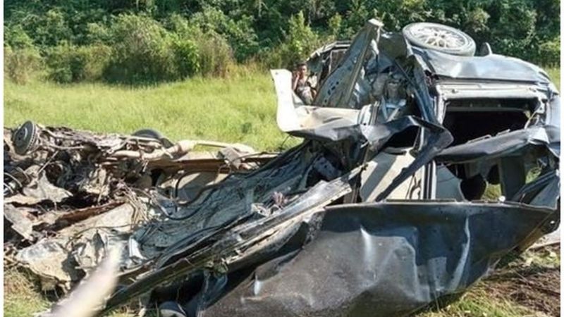 မိုင်းနင်းမိတဲ့ကားဟာ မောင်တောတောင်ပိုင်း ခရေမြိုင် ကျေးရွာကဖြစ်ပြီး ထိခိုက် သေဆုံးသူတွေ အားလုံးဟာလည်း ခရေမြိုင်ကျေးရွာက မိသားစုနှစ်စု ဖြစ်ကြတယ်လို့ အခင်း ဖြစ်ပွားရာနေရာကို ရောက်ရှိနေတဲ့ နံ့သာတောင်ဆရာတော်က မိန့်ပါတယ်။