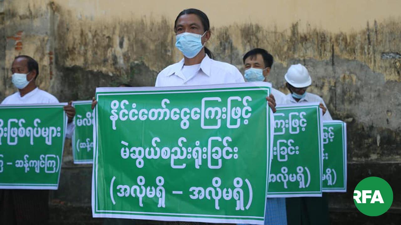 ပြီးခဲ့တဲ့ နိုဝင်ဘာ ၈ရက် အထွေထွေ ရွေးကောက်ပွဲမှာ မဲမသမာမှုတွေရှိခဲ့တယ်ဆိုပြီး မွန်ပြည်နယ်၊ မော်လမြိုင်မြို့နယ်က ကြံ့ခိုင်ဖွံ့ဖြိုးရေးပါတီဝင် ၂၀ လောက်က ရွေးကောက်ပွဲကော်မရှင်ကို ပါတီဝင်းအတွင်း ဒီနေ့ ကန့်ကွက်ဆန္ဒပြကြပါတယ်။