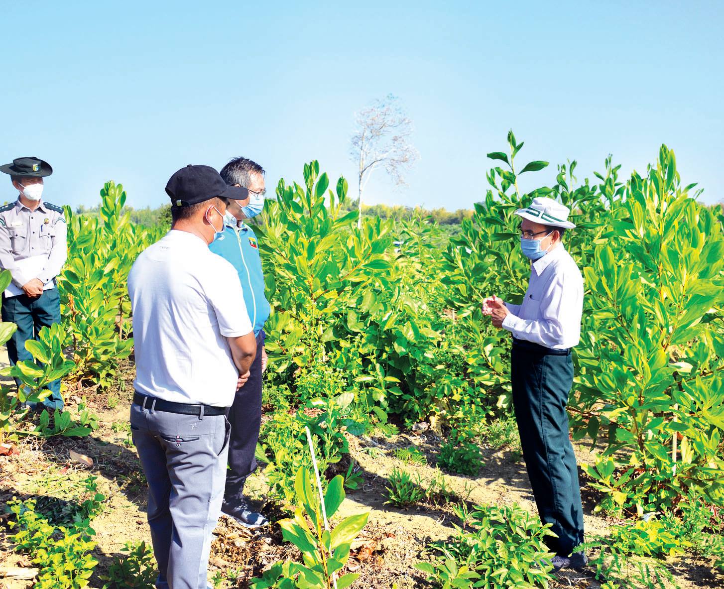 ပြည်ထောင်စုဝန်ကြီးနှင့်အဖွဲ့အား စိုက်ခင်းစခန်း ရှင်းလင်းဆောင်တွင် တာဝန်ရှိသူများက စိုက်ခင်း တည်ထောင်ခြင်းဆိုင်ရာ အချက်အလက်များကိုလည်းကောင်း၊ ၂၀၂၁ ခုနှစ်အတွင်း နောက်ထပ် စိုက်ပျိုးမည့် ဂေဟစနစ်ဖြည့်တင်းရေး သစ်မျိုးစုံစိုက်ခင်းဧက ၁၀၀ နှင့်စပ်လျဉ်း၍ လည်းကောင်း ရှင်းလင်းတင်ပြရာ ပြည်ထောင်စုဝန်ကြီးက ကိုဗစ်-၁၉ ကပ်ရောဂါဖြစ်ပွားနေ သည့် ကာလအတွင်း စိုက်ခင်းထိန်းသိမ်းပြုစုစောင့်ရှောက်ခြင်းနှင့် စိုက်ခင်းတည်ထောင်ခြင်းများအတွက် အလုပ်သမားများ ရရှိနိုင်မည့်အခြေအနေ၊ စိုက်ပျိုးမည့် သစ်မျိုးများ၊ စိုက်ပျိုးမည့်ပုံစံနှင့် စိုက်ခင်းရေပေးဝေရေးအတွက် အသေး စိတ် ညှိနှိုင်းဆွေးနွေးပြီး တင်ပြရန်မှာကြားသည်။