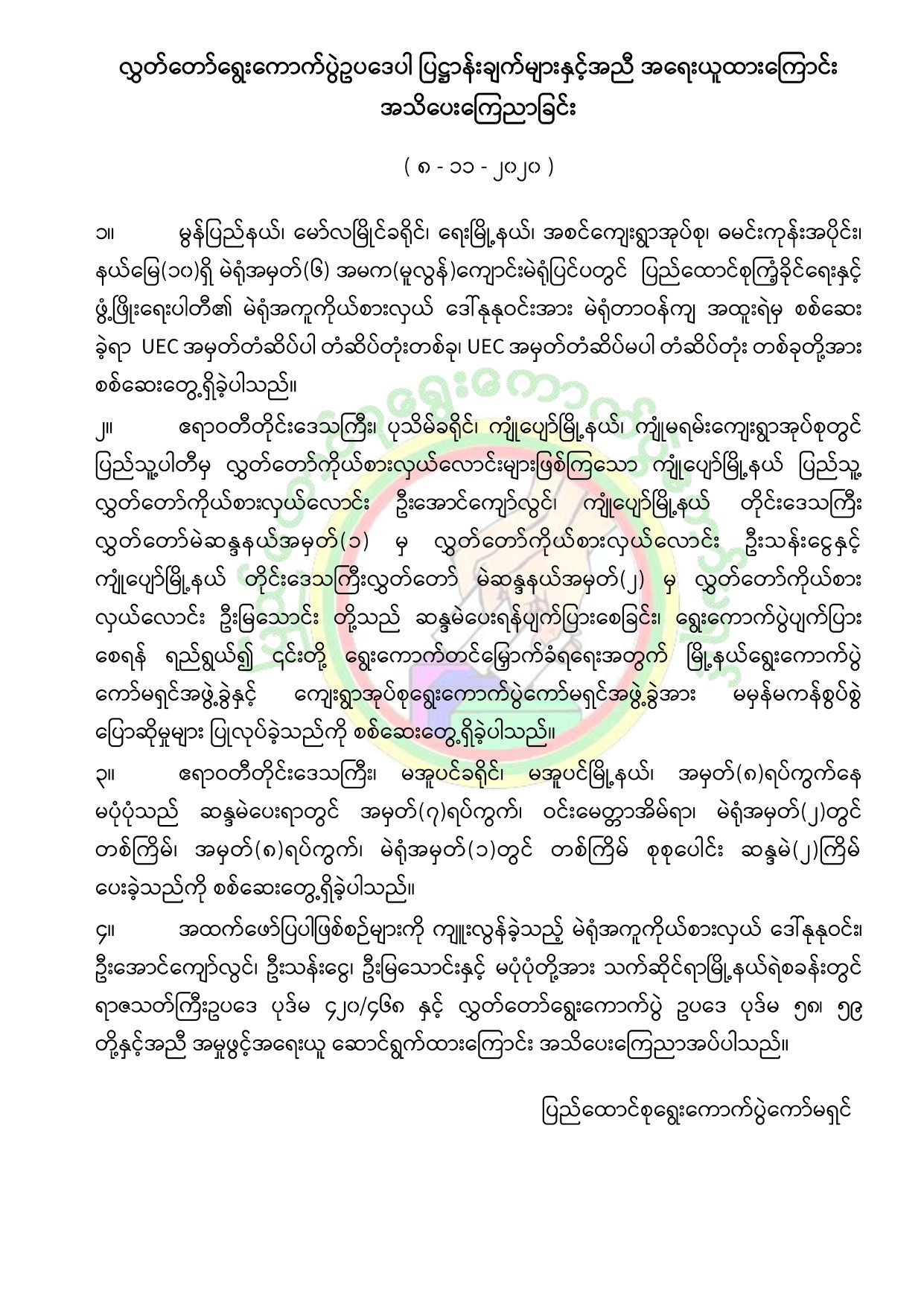 ဆန္ဒမဲ (၂) ကြိမ်ပေးသူအား ရွေးကောက်ပွဲဥပဒေအရ အရေးယူ
