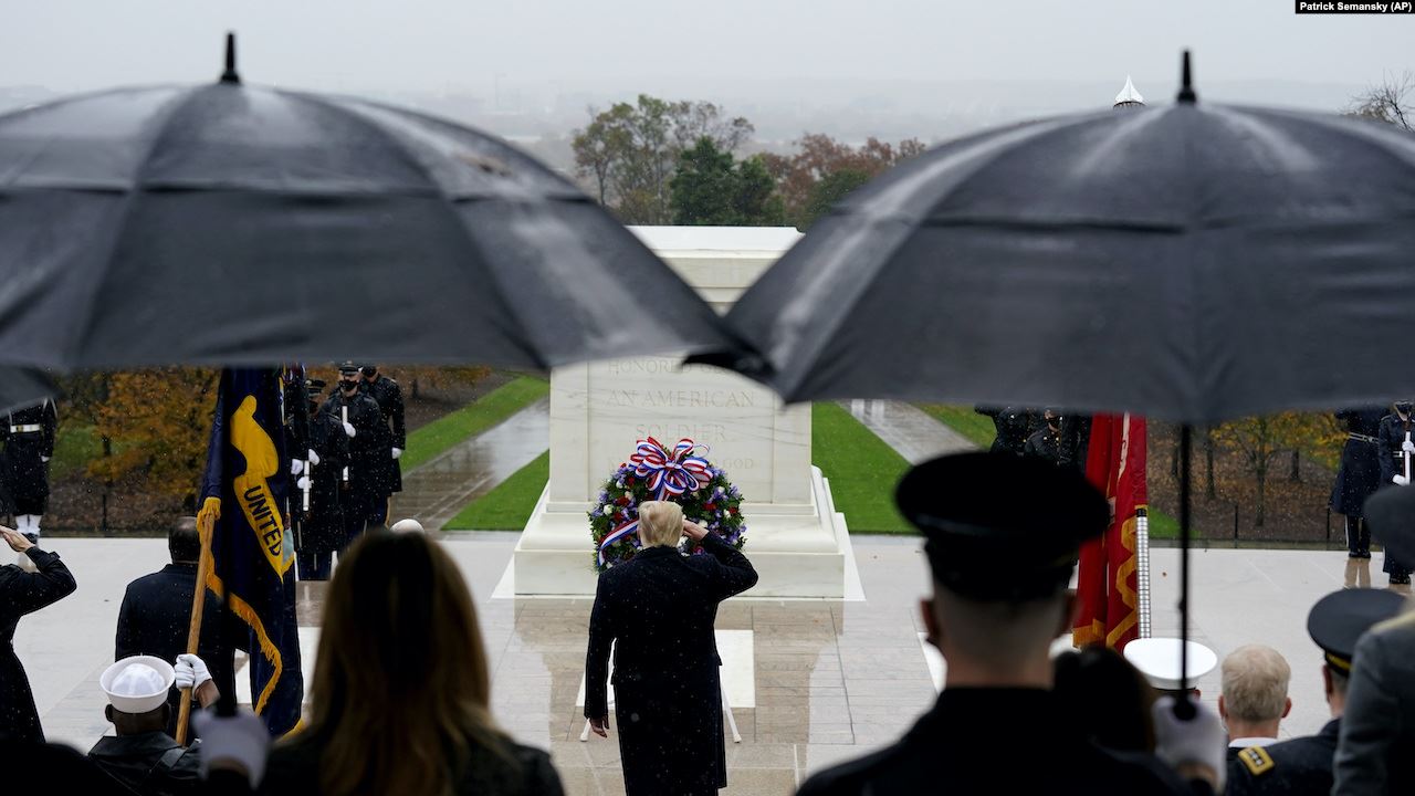 အမေရိကန်သမ္မတ ဒေါ်နယ်ထရမ့်က ဝါရှင်တန်ဒီစီမြို့အနားက Arlington အမျိုးသား စစ်သင်္ချိုင်းကို သွားရောက်ပြီး ဗုဒ္ဓဟူးနေ့မှာ ကျရောက်တဲ့ Veterans Day လို့ ခေါ်တဲ့ စစ်မှုထမ်းဟောင်းတွေကို ဂုဏ်ပြုတဲ့နေ့အခမ်းအနားကို တက်ရောက်ခဲ့ပါတယ်။
