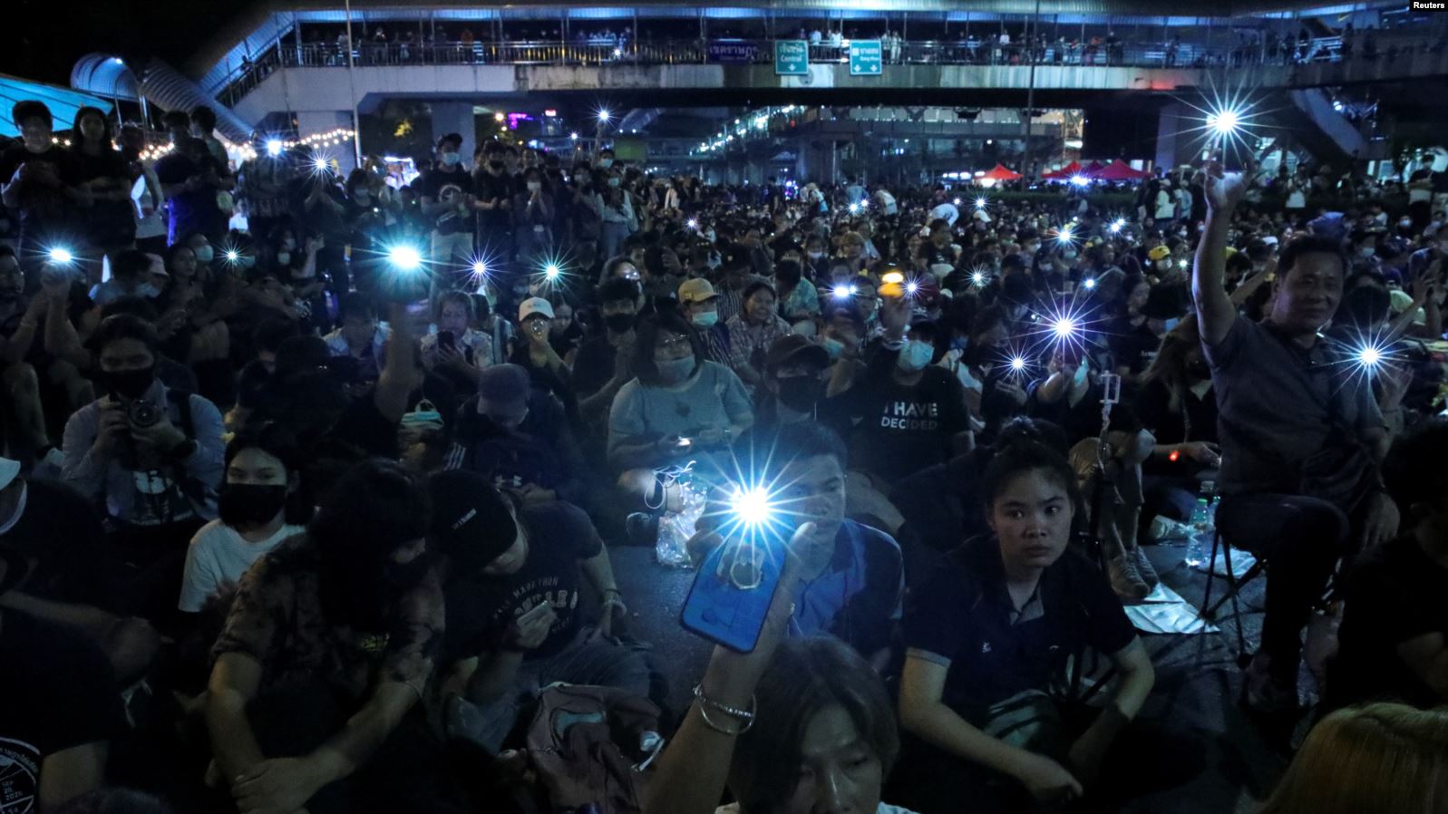 ထိုင်းနိုင်ငံမှာ အစိုးရဆန့်ကျင် ဆန္ဒပြသူတွေအနေနဲ့ မနေ့က ညီညီညာညာ တန်းစီချီတက်ကာ ဝန်ကြီးချုပ်နုတ်ထွက်ပေးရေး၊ ဖွဲ့စည်းပုံအသစ် ရေးဆွဲရေးနဲ့ ဘုရင်စနစ်ပြောင်းလဲရေး မိန့်ခွန်းတွေ ဟောပြောခဲ့ကြပါတယ်။