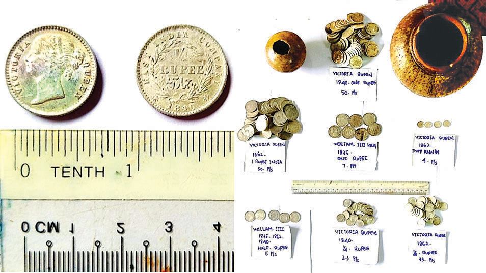 ဦးသီဟအေး၏ နေအိမ်အဟောင်း ကိုဖျက်၍ အသစ်ဆောက်လုပ်ရန် အတွက် ဖောင်ဒေးရှင်းမြေတူးနေစဉ် အနက် ၃ ပေခန့် အရောက်တွင် အချင်း ၈ လက်မခန့်၊ အဝအကျယ် ၃ ဒသမ ၅ လက်မခန့်နှင့် အမြင့် ၈ လက်မခန့်ရှိ စဉ့်အိုးတစ်လုံးကို တွေ့ရှိရကြောင်း သိရသည်။ ယင်း စဉ့်အိုးအတွင်းမှ ခေါင်းဘက်တွင် VICTORIA QUEEN စာတန်း၊ ဘုရင်မ ဦးခေါင်းပုံနှင့် ပန်းဘက်တွင် EAST INDIA COMPANY ONE RUPEE 1840 စာတန်းပါ ငွေဒင်္ဂါးပြား ၅၀၊ ခေါင်း ဘက်တွင် VICTORIA QUEEN စာတန်း နှင့်ဘုရင်မဦးခေါင်းပုံနှင့် ပန်းဘက် တွင် ONE RUPEE 1862 စာတန်းပါ ငွေဒင်္ဂါးပြား ၅၀၊ ခေါင်းဘက်တွင် WILLIAN-III, KING စာတန်းနှင့် ဘုရင်ဦးခေါင်းပုံ၊ ပန်းဘက်တွင် EAST INDIA COMPANY ONE RUPEE 1835 စာတန်းပါ ငွေဒင်္ဂါးပြားခုနစ်ပြား၊ ခေါင်းဘက်တွင် VICTORIA QUEEN စာတန်းနှင့် ဘုရင်မဦးခေါင်းပုံ၊ ပန်းဘက်တွင် TWO ANNAS INDIA 1862 စာတန်းပါ ငွေဒင်္ဂါးပြား လေးပြား၊ ခေါင်းဘက်တွင် VICTORIA QUEEN စာတန်းနှင့် ဘုရင်မ ဦးခေါင်းပုံ၊ ပန်းဘက်တွင် HALF RUPEE 1835 စာတန်းပါ ငွေဒင်္ဂါးပြား ငါးပြား၊ ခေါင်းဘက်တွင် VICTORIA QUEEN စာတန်းနှင့် ဘုရင်မဦးခေါင်းပုံ၊ ပန်းဘက်တွင် EAST INDIA COM-PANY 1/4 RUPEE 1840 စာတန်းပါ ငွေဒင်္ဂါးပြား ၂၃ ပြား၊ ခေါင်းဘက်တွင် WILLIAN-II, KING စာတန်းနှင့် ဘုရင်ဦးခေါင်းပုံနှင့် ပန်းဘက်တွင် 1/4 RUPEE INDIA 1862 စာတန်းပါ ငွေဒင်္ဂါးပြား ၃၃ ပြား စုစုပေါင်း ဒင်္ဂါး ပြား ၁၇၂ ပြားကို တွေ့ရှိခဲ့ခြင်းဖြစ် သည်။ ယင်းရှေးဟောင်းငွေဒင်္ဂါးပြား များကို တနင်္သာရီမြို့ ချောင်းငယ် ရပ်ကွက် သုခလမ်းရှိ ဦးသီဟအေး၏ မိခင်ဖြစ်သူ ဒေါ်သောင်းရီ၏ နေအိမ်၌ ထိန်းသိမ်းထားရှိကြောင်း သိရသည်။