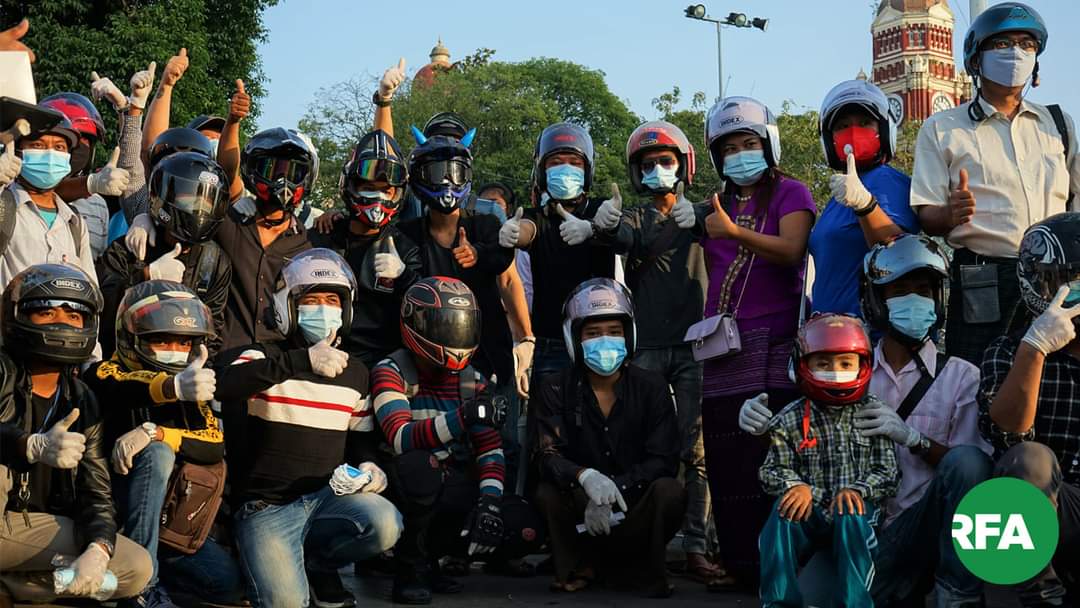 ဆိုင်ကယ်စီးနင်းခွင့်ရရှိရေးလှုပ်ရှားသူများအဖွဲ့ ( Yangon Bikers Revolution ) က ဦးဆောင်ပြီး ဆိုင်ကယ်စီးနင်းတာ ဝါသနာပါသူ အင်အား ၅၀ ခန့်ဟာ မော်တော်ဆိုင်ကယ်ဦးထုတ်တွေဝတ်ဆင်ပြီး နှာခေါင်းစည်းနဲ့ လက်အိတ်တွေကို မဟာဗန္ဓုလပန်းခြံနဲ့ မြို့တော်ခန်းမရှေ့မှာ လိုက်လံဝှေငှခဲ့ပါတယ်။