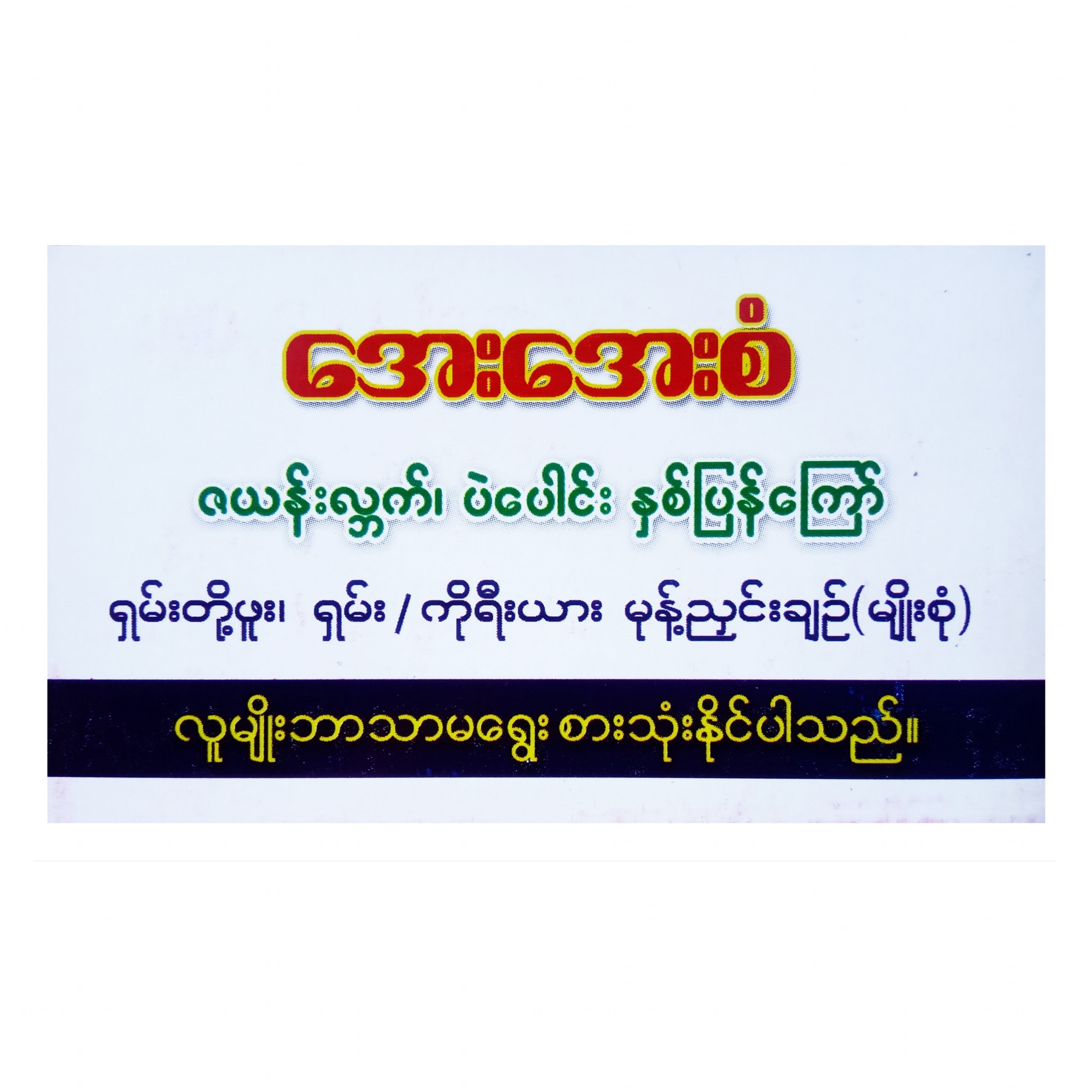 ဤ website ပါမှတ်တမ်းဓာတ်ပုံများသည် website စမ်းသပ်တင်ပြဆဲ ကာလဖြစ်သောကြောင့် အခြား internet website များမှ နမူနာအဖြစ် ကူးယူတင်ပြထားခြင်းသာဖြစ်ကြောင်း ရိုးသားစွာဝန်ခံပါသည်။ ယင်းအတွက် မူလပိုင်ရှင်က ခွင့်ပြုနားလည်ပေးပါရန် မေတ္တာရပ်ခံအပ်ပါသည်။