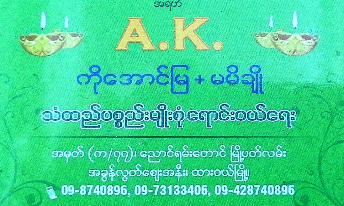 : အမှတ်(က/၇၇)၊ ညောင်ရမ်းတောင် မြို့ပတ်လမ်း၊ အခွန်လွတ်ဈေးအနီး၊ ထားဝယ်မြို့၊ တနင်္သာရီတိုင်းဒေသကြီး။