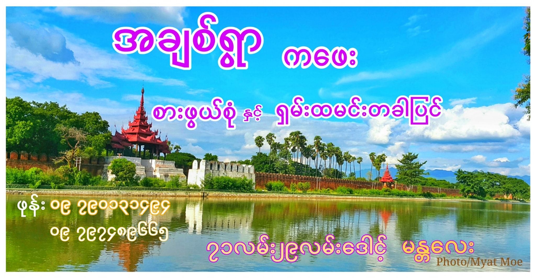 ဤ website ပါမှတ်တမ်းဓာတ်ပုံများသည် website စမ်းသပ်တင်ပြဆဲ ကာလဖြစ်သောကြောင့် အခြား internet website များမှ နမူနာအဖြစ် ကူးယူတင်ပြထားခြင်းသာဖြစ်ကြောင်း ရိုးသားစွာဝန်ခံပါသည်။ ယင်းအတွက် မူလပိုင်ရှင်က ခွင့်ပြုနားလည်ပေးပါရန် မေတ္တာရပ်ခံအပ်ပါသည်။