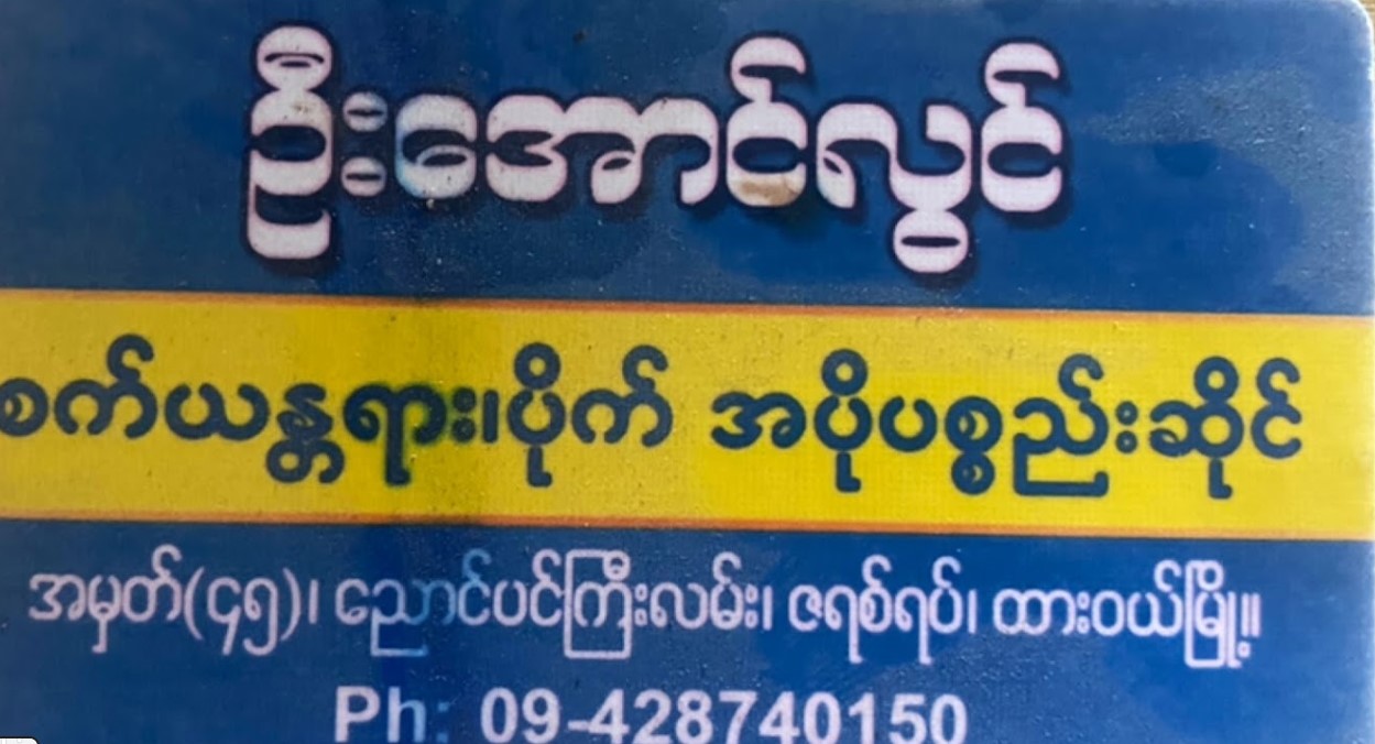 : အမှတ်(၄၅)၊ ညောင်ပင်ကြီးလမ်း၊ ဇရစ်ရပ်၊ ထားဝယ်မြို့၊ တနင်္သာရီတိုင်းဒေသကြီး။