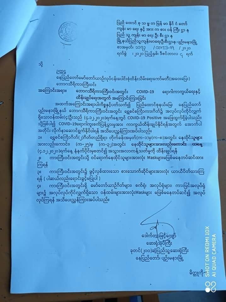 ဘောဂသီရိကားဝင်းအတွင်း စားသောက်ဆိုင်များအားလုံး(ပါဆယ်လည်း)ရောင်းချခွင့်မပြု