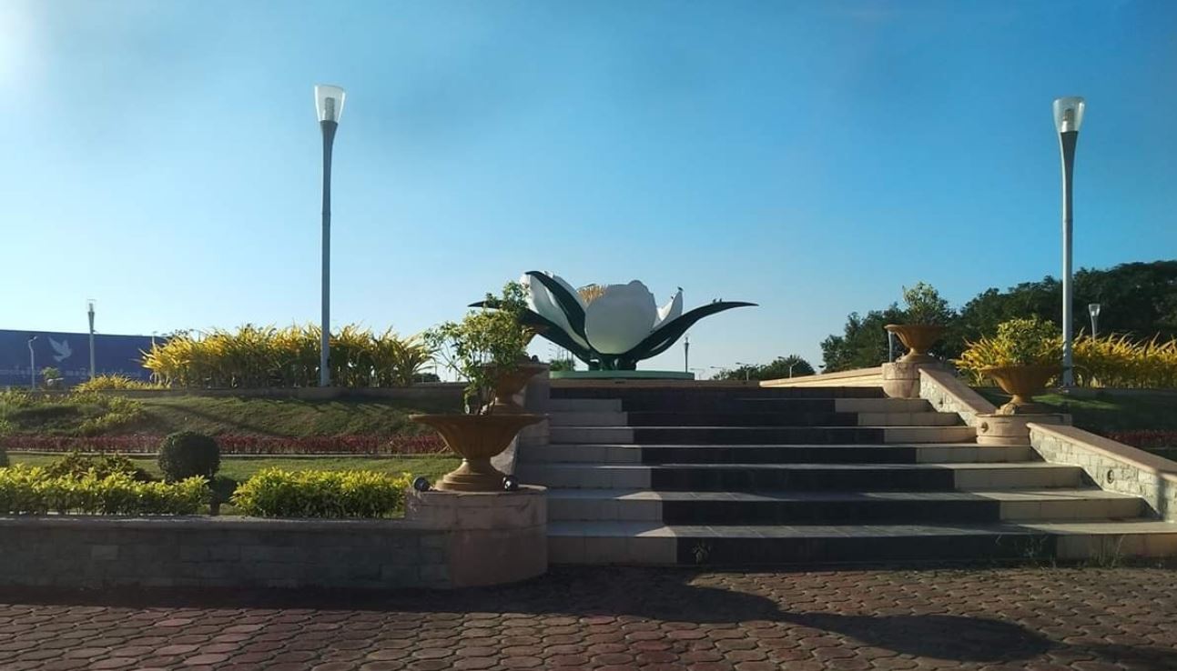 ရာဇသိင်္ဂဟလမ်းမကြီးနှင့် ရွှေပြည်တော်ဝင်လမ်း ဆုံရာတွင်တည်ရှိပါသည်။ရန်ကုန်ဘက်မှလာလျှင် ကနဦးတွေ့ရမည့်အဝိုင်းဖြစ်သည်။