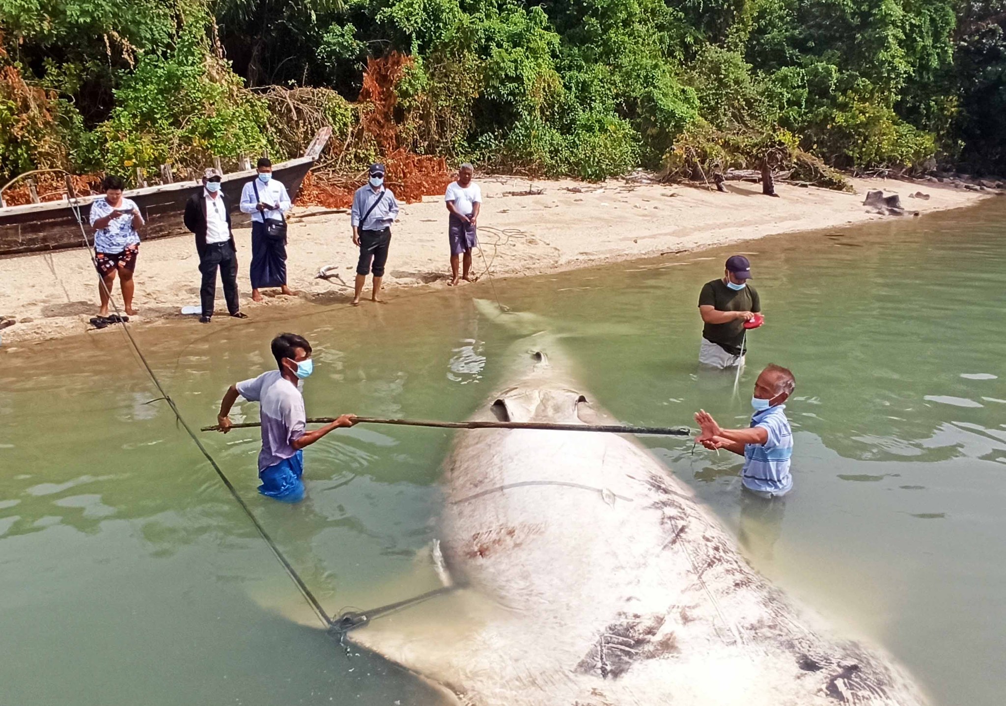အဆိုပါ ငါးကို ဝဲကျွန်းရွာအနီး သင်္ချိုင်းတောင်ကျွန်းသို့ ဆွဲယူစစ်ဆေးခဲ့ရာ အရှည်(၂၆)ပေ၊ လုံးပတ်(၁၂)ပေခန့် ရှိသော ဝေလငါးမန်း (Whale Shark) မျိုးနွယ်ဟု ခန့်မှန်းရ (ဒေသအခေါ် ဝစီပျောက်ငါး) အမတစ်ကောင်ဖြစ်ပြီး ၎င်းကျွန်းရှိ သဲသောင်ကမ်းခြေ၌ ဒီရေကျချိန်တွင် စနစ်တကျ မြေမြှုပ်ခဲ့ကြောင်း သိရသည်။