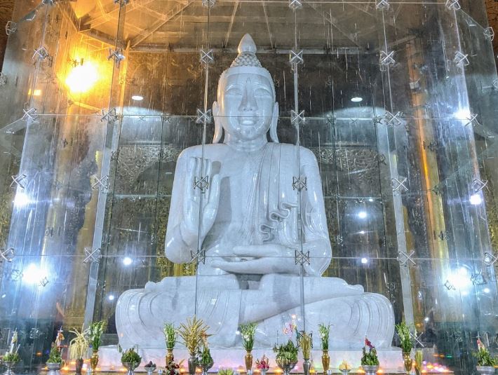 လောကချမ်းသာအဘယလာဘမုနိရုပ်ပွားတော်မြတ်ကြီးသည် ရန်ကုန်တိုင်းဒေသကြီး၊ အင်းစိန်မြို့နယ်၊ မင်းဓမ္မကုန်းတော်ပေါ်တွင် တည်ရှိသည်။ မန္တလေးတိုင်း၊ မတ္တရာမြို့နယ်၊ စကျင်တောင်မှ အဖြူရောင်စကျင်ကျောက်တုံးကြီးတစ်တုံးကို ပန်းတမော့ပညာရှင် ဦးတော်တော်နှင့်သားများမှ စတင်တွေ့ရှိကာ ထုဆစ်ပူဇော်ခဲ့ပြီး ၁၀-၇-၂၀၀၀ ခုနှစ်မှစတင်၍ အကြမ်းထုဆစ်ပြီးသော ဉာဏ်တော် ၃၇ ပေကျော် အလေးချိန်တန် ၅၀၀ ခန့်ရှိ ကျောက်တော်ကြီးရုပ်ပွားတော်မြတ်ကို ရန်ကုန်တိုင်းဒေသကြီး၊ အင်းစိန်မြို့နယ် မင်းဓမ္မကုန်းတော်ပေါ်သို့ အစိုးရနှင့် ပြည်သူပူးပေါင်းပါဝင်ကာ ကုန်းကြောင်း၊ ရေကြောင်းဖြင့် အောင်မြင်စွာ ပင့်ဆောင်နိုင်ခဲ့သည်။ ရုပ်ပွားတော်မြတ်စံပယ်ရာ ဂန္ဓကုဋီတိုက်တော်သည် ၁၂၆ ပေ မြင့်ပြီး အရှေ့နှင့်အနောက်အလျား ၁၂၄ ပေ၊ တောင်နှင့်မြောက်အလျား ၁၃၆ ပေ ကျယ်ဝန်းပါသည်။ ရုပ်ပွားတော်မြတ်ကြီး၏ ဉာဏ်တော်အမြင့်မှာ ၃၇ ပေ၊အနံ၂၄ ပေ၊ ထု ၁၁ ပေ၊ လက်ယာရစ်ခွေထားသော အကျယ် ၆ လက်မရှိ ဆံလုံးတော် ၃၄၂ လုံးနှင့် ဘေးရန်အန္တရာယ်မရှိအောင် ကာကွယ်ပေးလျက်ရှိသည့်ဟန်ဖြစ်သော အဘယမုဒြာသဏ္ဌာန် ထုလုပ်ထားပြီး ဘွဲ့တော်အပြည်အစုံမှာ လောကချမ်းသာအဘယလာဘမုနိရုပ်ပွားတော်မြတ်ကြီး ဖြစ်သည်။ ရုပ်ပွားတော်မြတ်ကြီး၏ ဦးသျှောင်တော် ညာဘက်ခြမ်း၌ စောက် ၁၄ လက်မ၊ အချင်း ၁ လက်မခွဲရှိ သဘာဝအပေါက်တစ်ခုပါရှိလာခဲ့ရာ ယင်းအပေါက်၌ ဗုဒ္ဓဘုရားရှင်၏ သရီရဓာတ်တော်များ ကိန်းဝပ်လျက်ရှိသော ရတနာရွှေကြုတ်တော် ဌာပနာသွင်းမင်္ဂလာနှင့် စုလစ်မွန်းချွန် အထွဋ်တင်သော လေးကျွန်းတစ်မြင်းမိုရ်ပြဿဒ်ဆောင်ကြီး ၅ ဆောင် စောင်းတန်းနှစ်သွယ်ရှိ ပြဿဒ် ၄ ဆောင်တို့ကို ရွှေထီးတော်တင်လှူပူဇော်သည့် အခမ်းအနားများကို ၂၈-၁၁-၂၀၀၁ ရက်နေ့တွင် ခမ်းနားသိုက်မြိုက်စွာ ကျင်းပခဲ့ပါသည်။ ရုပ်ပွားတော်မြတ်ကြီး၏ ကမ္မည်းမော်ကွန်းကျောက်စာတိုင်ကို မြန်မာ၊ ပါဠိ၊ သက္ကတ၊ အင်္ဂလိပ် ဟူ၍ လေးမျိုးရေးထိုးမှတ်တမ်းရေးထိုးထားပြီး ရုပ်ပွားတော်ကြီး၏အနီးတွင်လည်း အမြင့် ၁၀ ပေရှိ လက်ဝဲတော်ရံ၊ လက်ယာတော်ရံ ရဟန္တာပုံတော်များကို ထုဆစ်ထားပါသည်။ ကျောက်တော်ကြီးဘုရား၏ ဒုတိယအကြိမ် ဆွမ်းဆန်စိမ်းလောင်းလှူပွဲတွင် လှူဒါန်းခဲ့သော အချင်း ၁၀ ပေ ၄ လက်မ၊ အမြင့် ၅ ပေ ၁၁ လက်မ၊ စောက်အနက် ၅ ပေ ၁၂ လက်မ၊ အလေးချိန်အားဖြင့် တန် ၃၀ ရှိပြီး ဆန် ၆၃ တင်းချက်ဝင်သည့် ကျောက်သပိတ်တော်ကြီးကို မြင်တွေ့နိုင်ပါသည်။ ရင်ပြင်တော်တွင် တံခွန်တိုင်၊ ကျောက်သပိတ်တော်ကြီး၊ ဆုတောင်းပြည့်ရွှေလဝင်းဓာတ်ပန္နက်စေတီတော်၊ ရှင်သီဝလိကိုယ်တော်ရုပ်တု စသည်တို့ကို တွေ့မြင်နိုင်ပါသည်။ လောကချမ်းသာအဘယလာဘမုနိကျောက်တော်ကြီး ရုပ်ပွားတော်တည်ရှိ