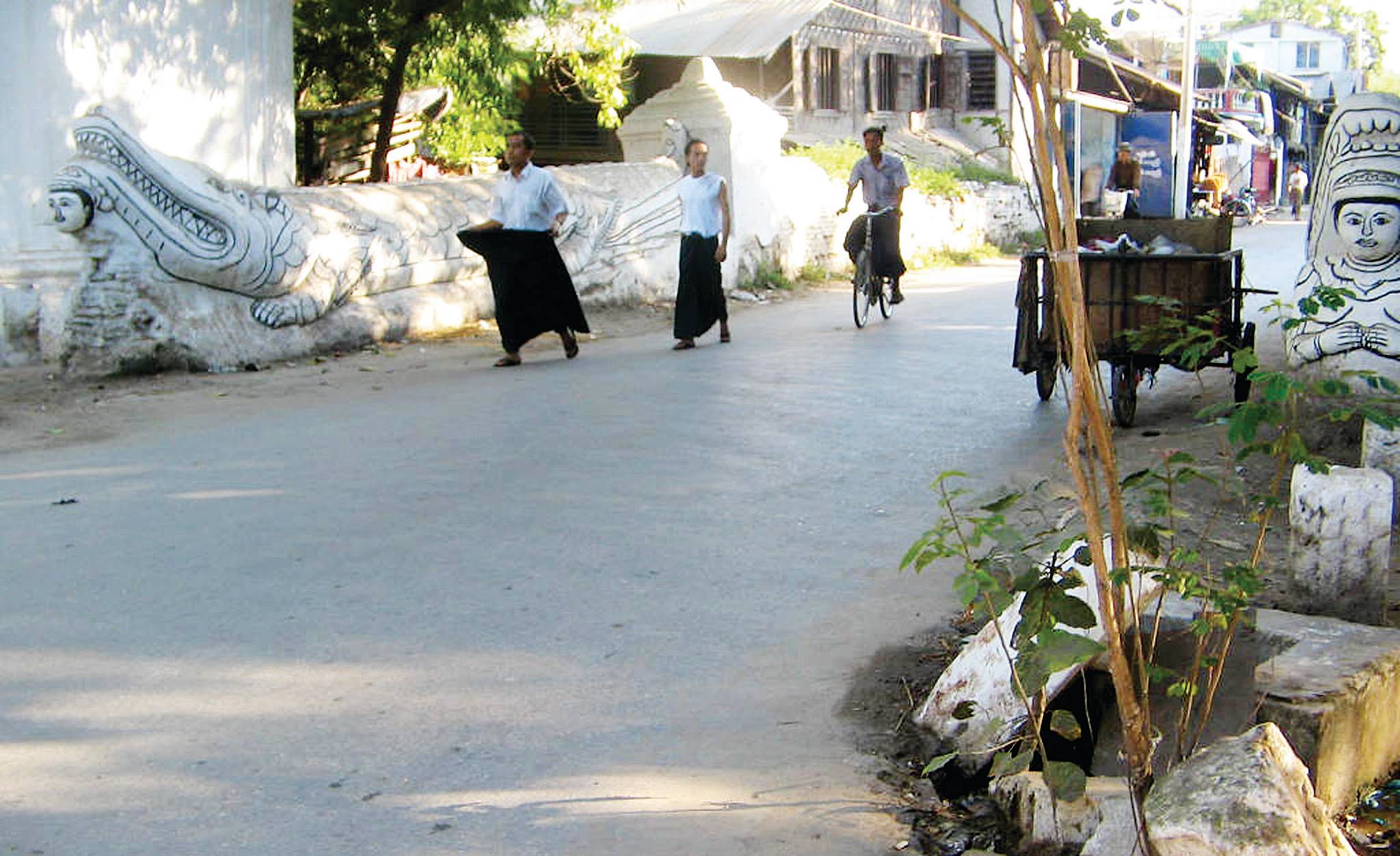 ၂၉ လမ်း၏ ထိုအနောက်ပိုင်းကို ဒေါင်းရိုးသင်္ဘော တန်းဟုလည်း ခေါ်ဆိုကြ၏။ ''ရှေးတုန်းက မြစ်ဆိပ်ဆို တာ ဒီနားပေါ့။ သင်္ဘောတွေ ဆိုက်တဲ့နေရာတွေ'' ဟု လူကြီးသူမများ ပြောစကားကို တအံ့တသြနားထောင်ခဲ့ ရဖူးလေသည်။ ဟုတ်သည် မဟုတ်သည် အပထား မြစ်ဆိပ်နှင့်ဈေးချိုကို ဟင်းသီးဟင်းရွက်ကုန်၊ ကောက်ပဲ သီးနှံကုန်တွေကိုတော့ ဒီလမ်းကပဲ သယ်ပို့ကြရသည်။ အနောက်ကျွန်းထဲဆီမှ ပဲစိမ်းစား ဥလှည်းတန်းကြီးလာလျှင် ကျွန်တော်တို့သည် လှည်းမြီးခိုကာ ရိုင်ပတ်ကြားမှ ပဲစိမ်းစားဥများ ဆွဲဖြုတ်ပြေးကြရသည်။ သဘောကောင်းသော လှည်းသမားတစ်ယောက် တလေကမူ ကျွန်တော် တို့မြင်သည်နှင့် ပဲစိမ်းစားဥတစ်တွဲဖြုတ်ယူပြီး လှမ်းပစ် ပေးတတ်သည်။ ထို့ကြောင့် ၂၉ လမ်းပေါ်တွင် လှည်းတွေတအီအီလည်းဖြတ်နေကြ၏။ ဈေးသွားဈေးပြန် မြင်းလှည်းများလည်း မနက်သုံးနာရီလောက်ကတည်းကခွာသံတခွပ်ခွပ်နှင့် ဥဒဟိုသွားလာနေကြပါသည်။ ၂၉ လမ်းအနောက်ပိုင်းက မြန်မာရပ်ကွက်မို့ မြန်မာမုန့်ပဲ သရေစာတွေလည်းရနိုင်၏။ မနက်လင်းလျှင် အနောက်ထိပ်မှာ ဒေါ်လှရီအကြော်ဖိုက ကောက်ညှင်းပေါင်း အကြော်ရှိသည်။ ထို့နောက် အနားပတ်ဝန်းကျင်မှာ မုန့်ကြက်အူ၊ မုန့်လုပ်ဆောင်း၊ အုန်းပေါင်းငှက်ပျောသီး ကြော်၊ ပဲမြစ်၊ ကုလားစပါးယိုစသည့် ဈေးသည်များကား နေဝင်သည်ထိ မပြတ်တော့။