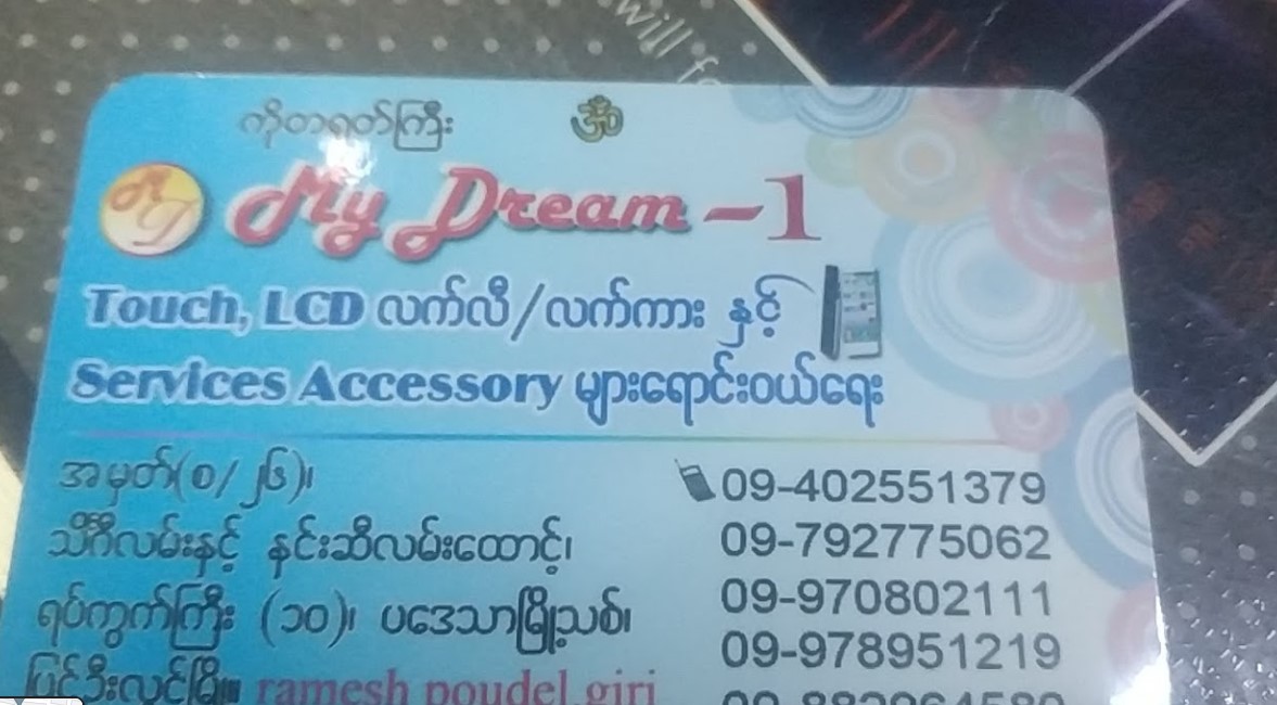 : သိင်္ဂီလမ်းနှင့် နှင်းဆီလမ်းထောင့်၊ ရပ်ကွက်ကြီး (၁၀)၊ ပဒေသာမြို့သစ်၊ ပြင်ဦးလွင်မြို့။