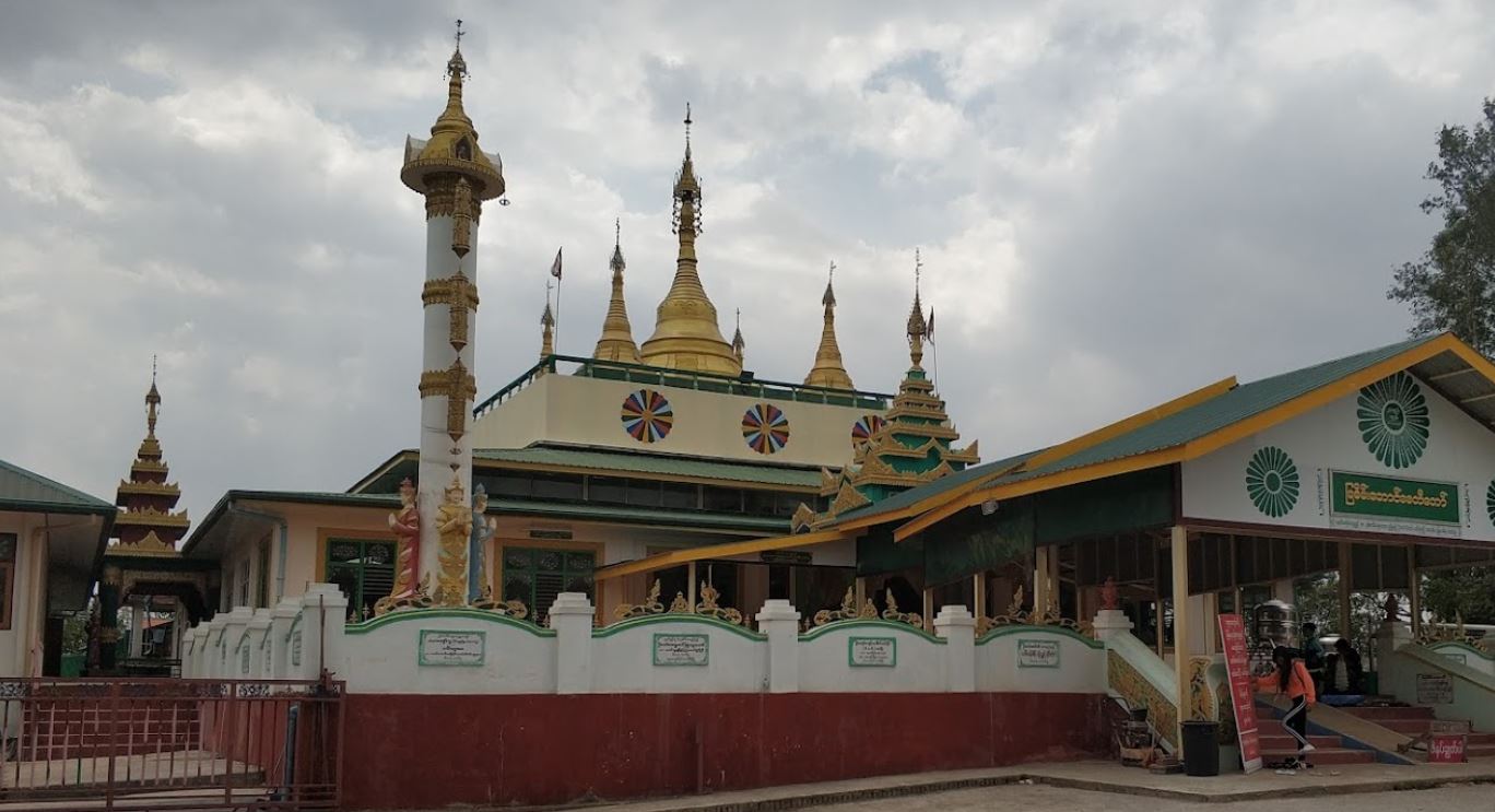 တောင်ကြီးမြို့အရှေ့ဘက်ရှိ တောင်တန်းများအနက် မြောက်ဘက်အစွန်ဆုံးကျသော တောင်ပေါ်၌ တည်ရှိသည်။ ထိုတောင်သည် ယခင်က 'ကျောက်ဖားတောင်' ဟု အမည်တွင်ခဲ့သည်။ မြစိမ်းတောင်စေတီ၏ ဒါယကာဖြစ်သော ဦးချစ်ထူးသည် ဤစေတီကို တည်ထားကိုးကွယ်ရန် အုတ်မြစ်ချစဉ်က အရည်နုသော မြကျောက်များကို တူးဖော်တွေ့ရှိခြင်း၊ ကျောက်ဖားတောင်အနီး နဂါးဂူအတွင်းမှ ၄ လက်မရှိသော မြဘုရားကိုပင့်ဆောင်ရရှိခြင်း၊ အလှူရှင်များကလည်း မြဘုရား ၇ ဆူနှင့် မြကလပ်တို့ကို လာရောက်လှူဒါန်းကြသည်ကို လက်ခံရရှိခြင်းတို့ကြောင့် ကျောက်ဖားတောင်ကို "မြစိမ်းတောင်"ဟု ပြောင်းလဲခေါ်ဝေါ်ခဲ့ကြပြီး စေတီတော်ကိုလည်း "မြစိမ်းတောင်စေတီ" ဟုခေါ်တွင်ခဲ့ကြသည်။ စေတီတော်၏ ဉာဏ်တော်အမြင့်မှာ ၁၀၈ တောင်ရှိပြီး စေတီတော်၏ အောက်ခြေမဏ္ဍိုင် တန်စောင်းလေးဖက်တွင် မုဒြာဟန်အမျိုးမျိုးဖြင့် ကြည်ညိုဖွယ်ရာ ဆင်းတုတော်များ ပူဇော်ထားပါသည်။ စေတီတော်တည်ရှိရာ တောင်မြောက်သွယ်တန်းနေသော တောင်တန်းပေါ်၌ ရွှေမုဋ္ဌောစေတီနှင့် ရွှေဘုန်းပွင့်စေတီတို့ တည်ရှိပါသည်။