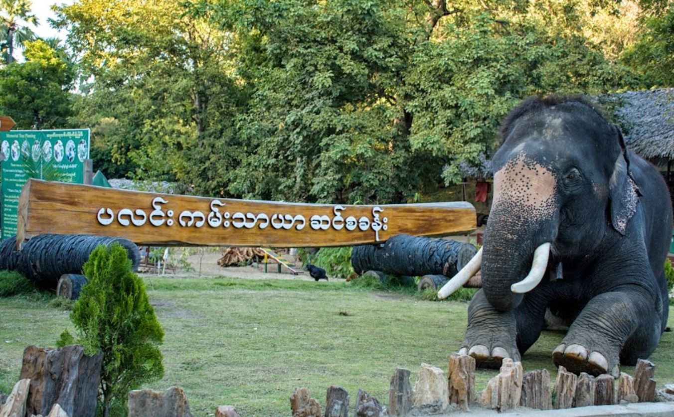 ညောင်ဦးမြို့မှ ငါးမိုင်ခန့်အကွာ၊ ညောင်ဦး-မြင်းခြံ လမ်းကြီးဘေး၊ အနောက်ပုလင်းကျေးရွာအနီး ဧရာဝတီမြစ်ကမ်းဘေးတွင် တည်ရှိသည်။ ၂၀၁၈ ခုနှစ် မတ်လ ၂၈ ရက်နေ့တွင် စတင်ဖွင့်လှစ်ခဲ့ပြီး ဆင်စခန်းဝန်းအတွင်း၌ လာရောက်လည်ပတ်သူများ အပန်းဖြေနားနေနိုင်ရန် ခြေတံရှည်တဲ နားနေဆောင်များတည်ဆောက်ထားခြင်း၊ သစ်ပင်ကြီးများနှင့် ထန်းပင်ကြီးများကို အမှီပြုဆောက်လုပ်ထားသည့် သစ်ပင်မျှော်စင် ဆောက်လုပ်ထားခြင်း၊ ရှုမျှော်ခင်းကြည့်ရှုနိုင်ရန် ဧရာဝတီမြစ်ကမ်းဘက် တံတားတည်ဆောက်ထားခြင်း၊ ကလေးကစားကွင်းနှင့် ဥယျာဉ်တွင်ကလေးငယ်များ ပျော်ရွှင်စွာကစားနိုင်ခြင်း၊ ဆင်များရေချ၊ ရေချိုးချိန်၊ ဆင်စာဘူဖေးကျွေးချိန်နှင့် မြစ်ကြောင်းတစ်လျှောက် မော်တော်စီး၍ ရှုခင်းများကြည့်ရှုနိုင်စေရန် စီစဉ်ထားသည်။ ထို့ပြင် ဆင်စခန်းဝန်းအတွင်း၌ ဖွင့်လှစ်ပြသထားသော ဆင်ပြတိုက်တွင် ဆင်အကြောင်းသမိုင်း၊ အာရှဆင်များ၏ နေထိုင်ကျက်စားမှု၊ မြန်မာ့သစ်လုပ်ငန်းပိုင် ဆင်များနေထိုင် ကျက်စားမှု၊ မြန်မာနိုင်ငံတွင် ဆင်များနေထိုင်ကျက်စားမှု၊ အာရှဆင်နှင့် အာဖရိကဆင်တို့၏ ခြားနားချက်၊ ဆင်များ၏ ဆင့်ကဲပြောင်းလဲမှုဖြစ်စဉ်၊ ဆင်စွယ်အကြောင်း သိကောင်းစရာနှင့် မြန်မာနိုင်ငံတွင် ဆင်စွယ်အမျိုးအစား ခွဲခြားထားမှုများ၊ မြန်မာ့သမိုင်းတွင် ဆင်များ၏ အရေးပါမှု၊မြန်မာနိုင်ငံမှ ဆင်ဖြူတော်များ၊ မြန်မာနိုင်ငံမှ တောဆင်များ ဆင်စွယ်နှင့် ခန္ဓာကိုယ်အစိတ်အပိုင်းများအတွက် သတ်ဖြတ်ခံနေရသည့် အန္တရာယ်နှင့် ကြုံတွေ့နေရသည့် နေရာပြကွက်များ၊ တောဆင်ရိုင်များကို တရားမဝင်သတ်ဖြတ်၍ ဆင်နှင့်ပတ်သက်သည့် ခန္ဓာကိုယ်အစိတ်အပိုင်းများ ကမ္ဘာတွင် တရားမဝင်ဈေးကွက် ဖြစ်ပေါ်ရောင်းချနေကြပုံနှင့် ထိုသို့ပြုမူသော ပြစ်မှုများအတွက် ပြစ်ဒဏ်ချမှတ်မှုများ၊ နိုင်ငံတော်အစိုးရအနေဖြင့် တောဆင်ရိုင်းများကာကွယ်ရေးနှင့် ဆင်နှင့်လူ ပဋိပက္ခများ ဖြေရှင်းရေးအတွက် ဆောင်ရွက်နေသည့် လုပ်ငန်းပြကွက်များ၊ ကမ္ဘာ့ဆင်များနေ့အကြောင်း သိကောင်းစရာ၊ မြန်မာ့သစ်လုပ်ငန်း၏ အရေးပေါ်တောဆင်မောင်းအဖွဲ့ ဆောင်ရွက်နေမှုများ၊ မြန်မာ့သစ်လုပ်ငန်း၏ ဆင်များကို စနစ်တကျ ထိန်းသိမ်းပြုစုစောင့်ရှောက်ခြင်း ဆောင်ရွက်နေမှုများ၊ ဆင်များ၏ အလေ့အထ၊ သဘောသဘာဝ၊ အမူအကျင့်နှင့် ဇီဝကမ္မဆိုင်ရာ အချက်အလက်များ၊ မြန်မာ့သစ်လုပ်ငန်းပိုင် ဆင်များ၏ အသက်အရွယ်နှင့် အလုပ်လုပ်နိုင်စွမ်းအားကို မူတည်၍ အတန်းအစားခွဲခြားထားခြင်း၊ ဆင်ဦးစီးများ ဆင်ကိုထိန်းချုပ်နိုင်သည့် အာရုံကြောနေရာများ၊ မှိန်းသင်ကြားခြင်းဆိုင်ရာ အချက်အလက်များ၊ မြန်မာ့သစ်လုပ်ငန်းမှ ဆင်အမွှာပူးမွေးခဲ့သည့် မှတ်တမ်